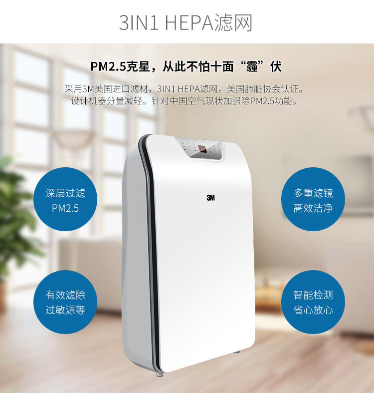 3M空气净化器KJ2025-SL 空气净化器 家用 卧室 除雾霾pm2.5