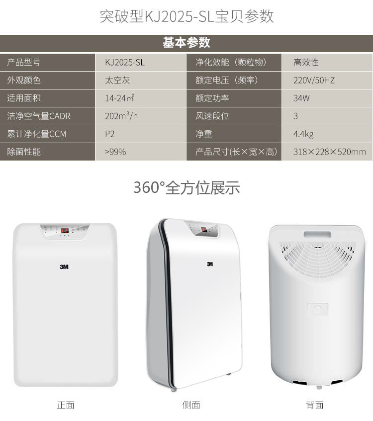 [众科水处理空气净化,氧吧]3M空气净化器KJ2025-SL 空月销量0件仅售799元
