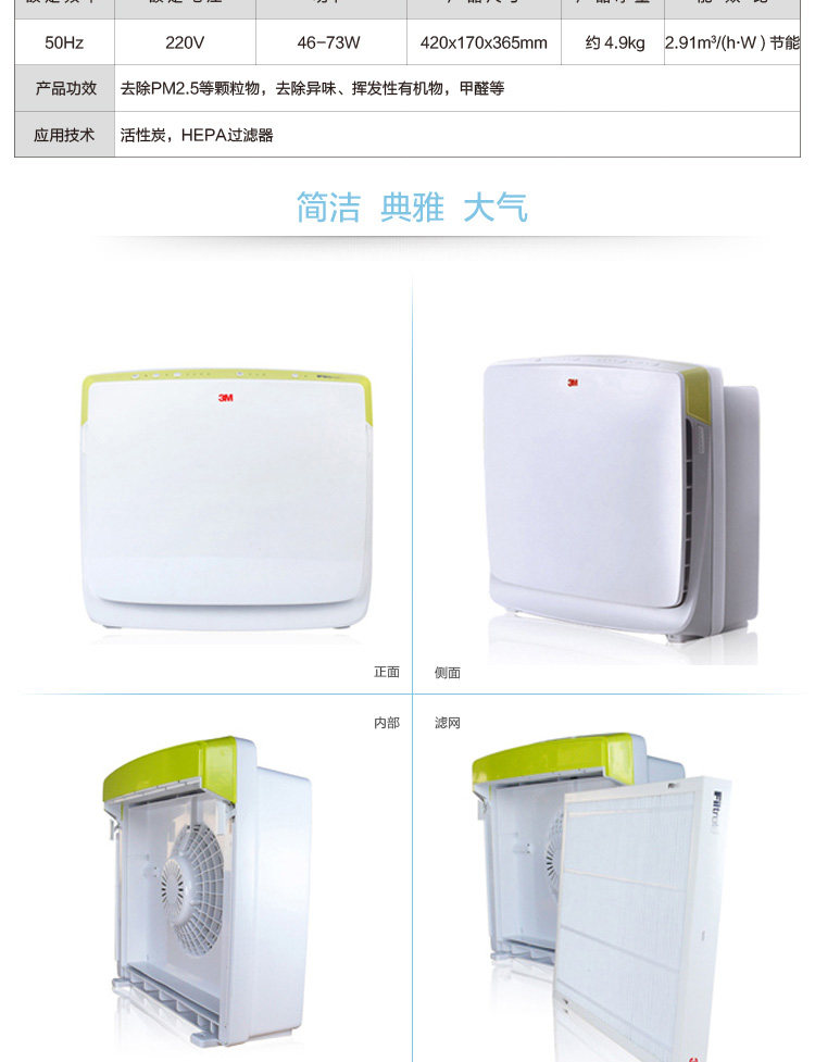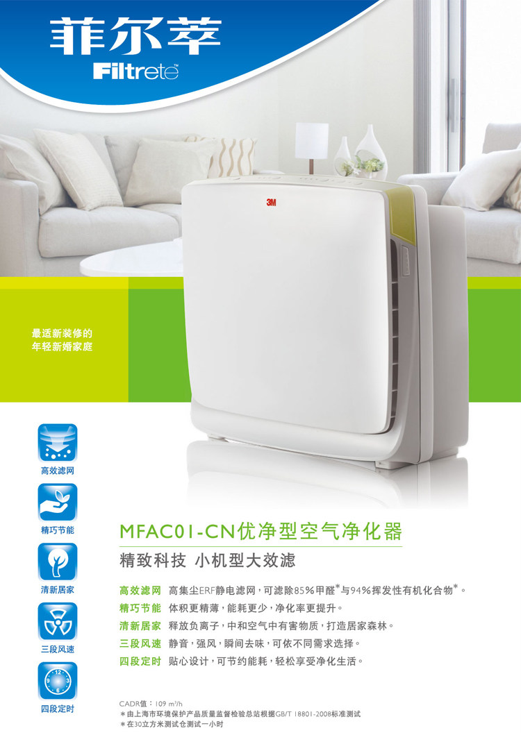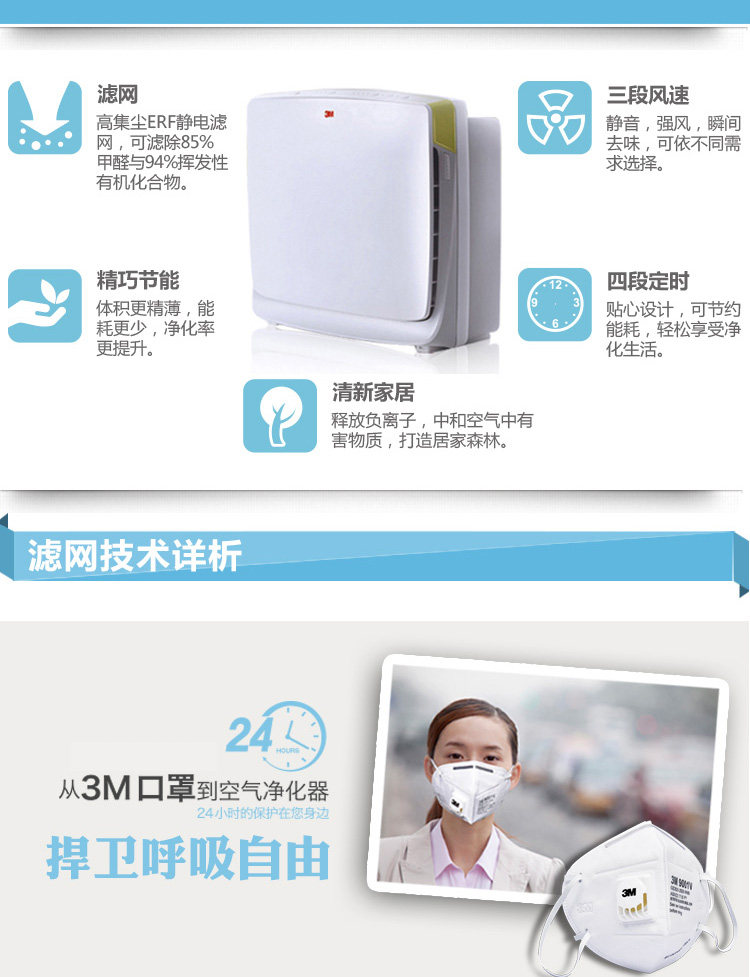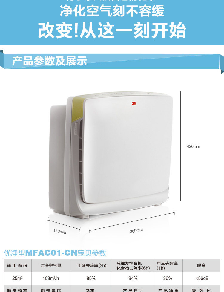 [健一家 专业净水顾问空气净化,氧吧]3M空气净化器MFAC01-CN家用月销量0件仅售680元