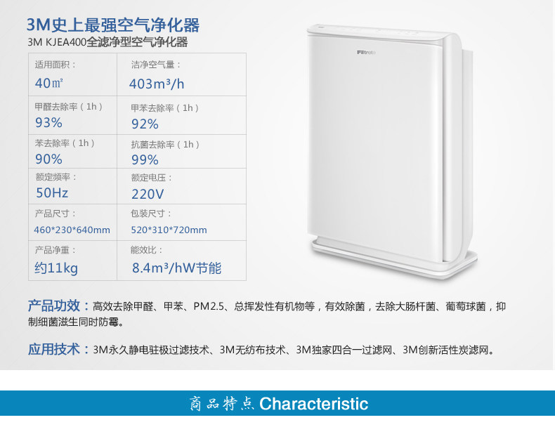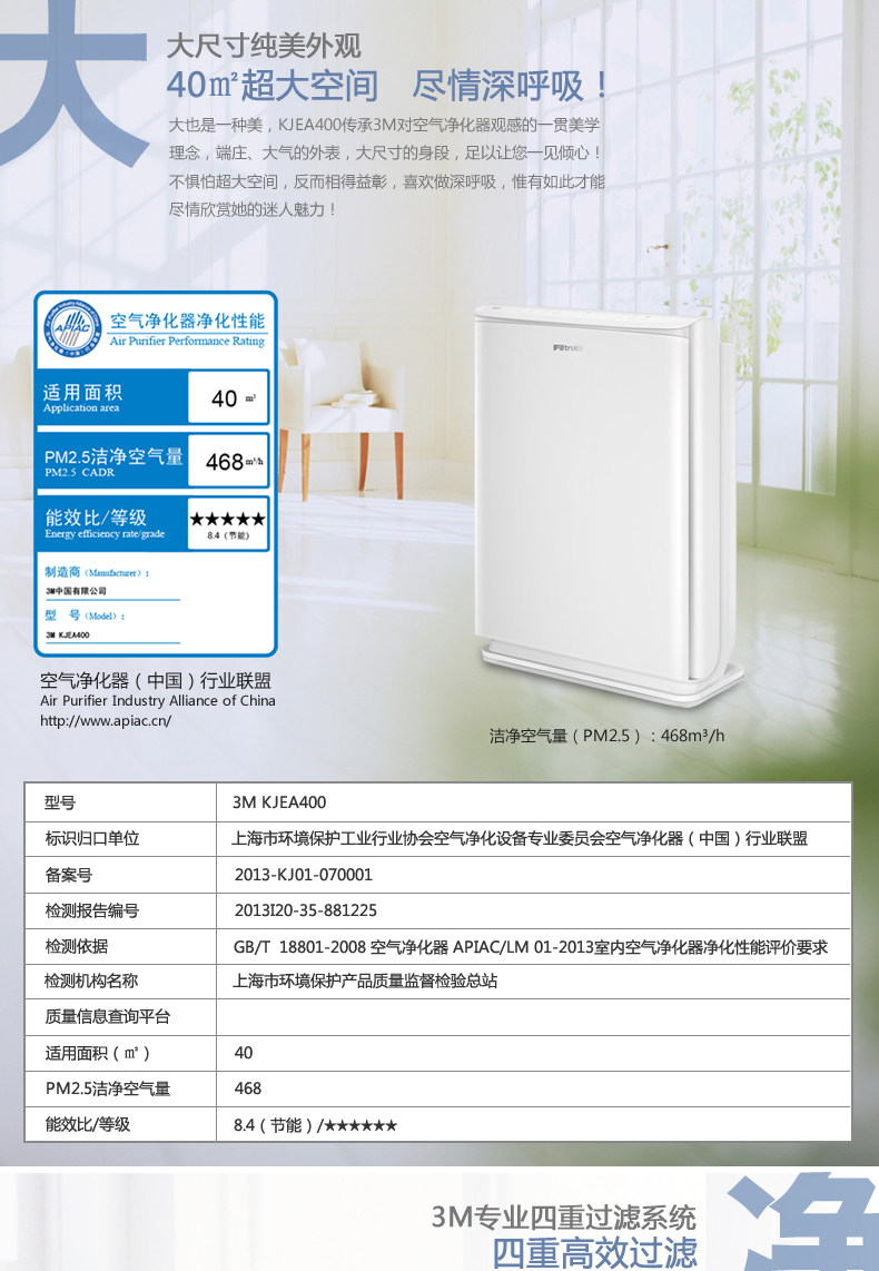 3M 空气净化器 家用PM2.5 菲尔萃全滤净型KJEA400 高效去除甲醛