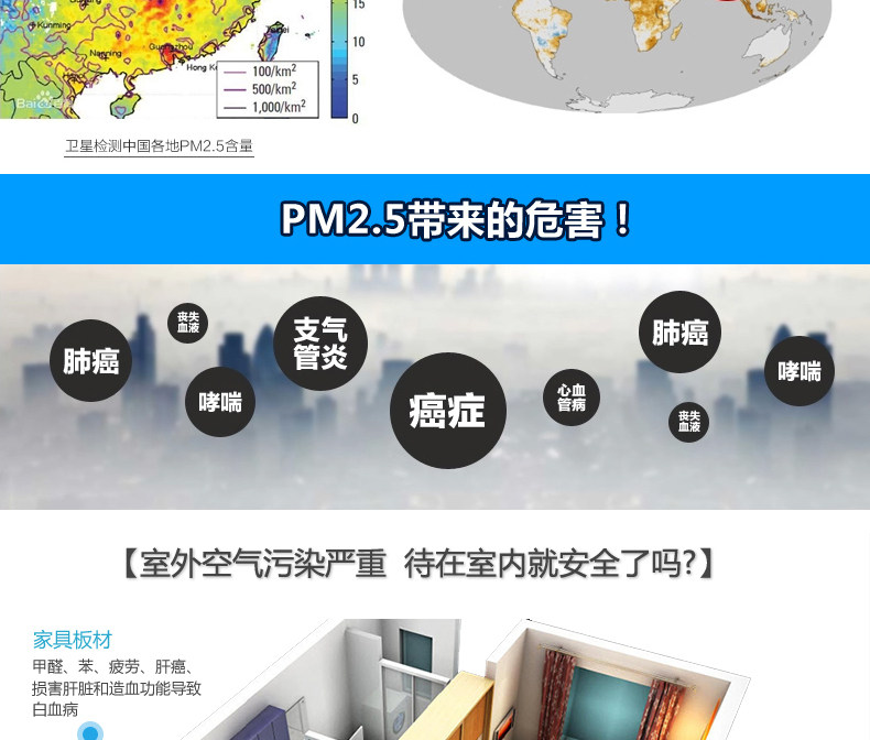 • 功能:除花粉 除甲醛 除烟除尘 杀菌