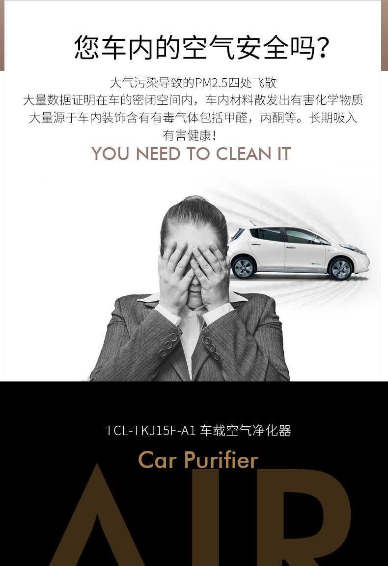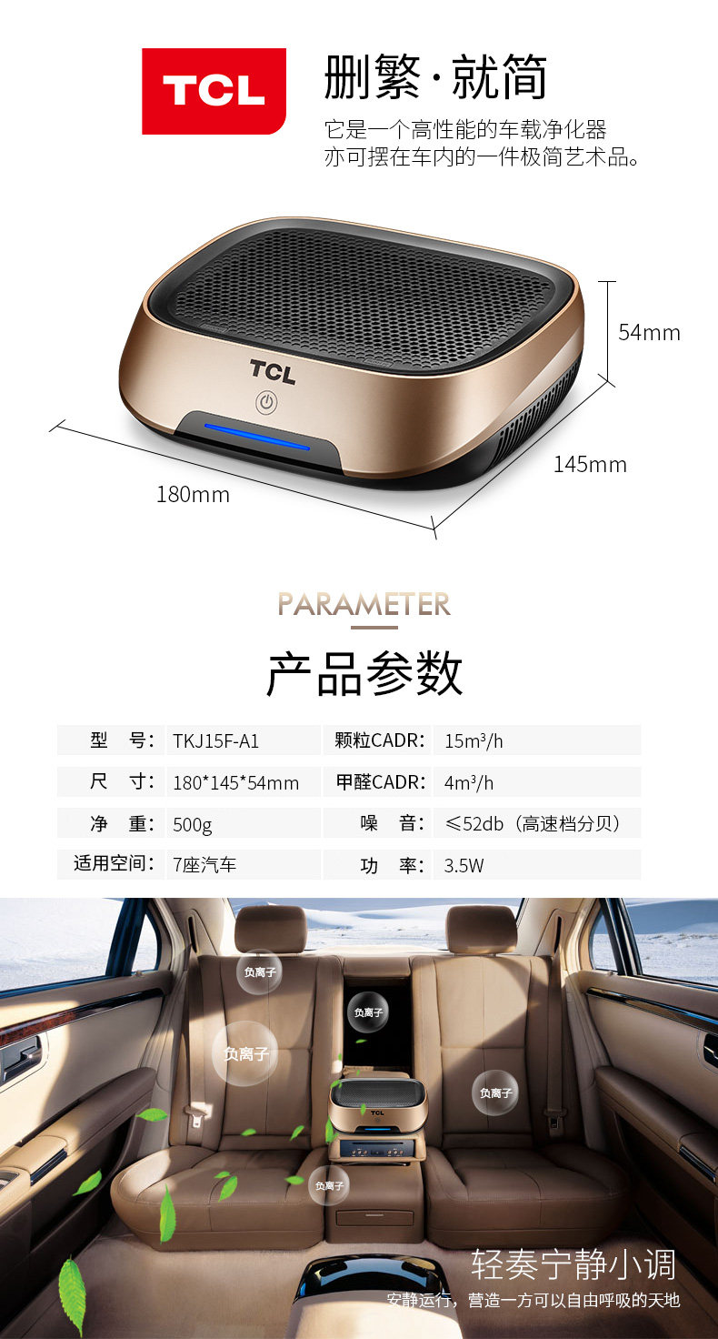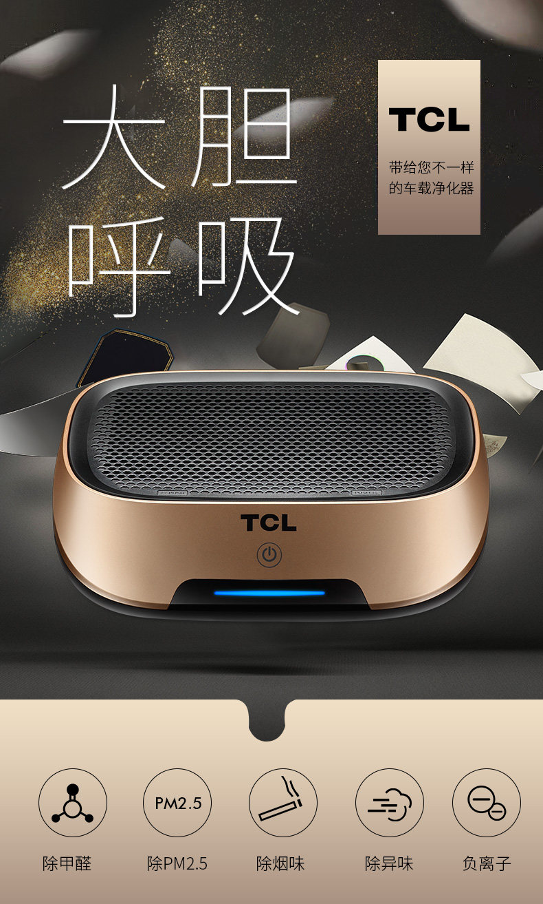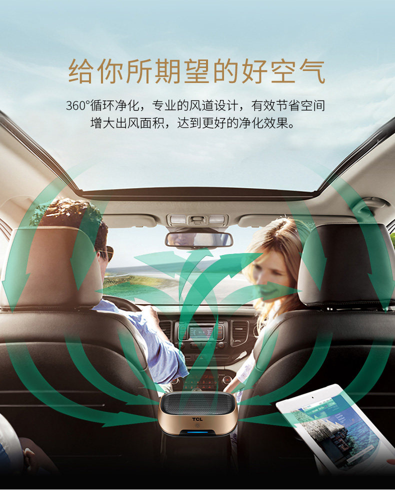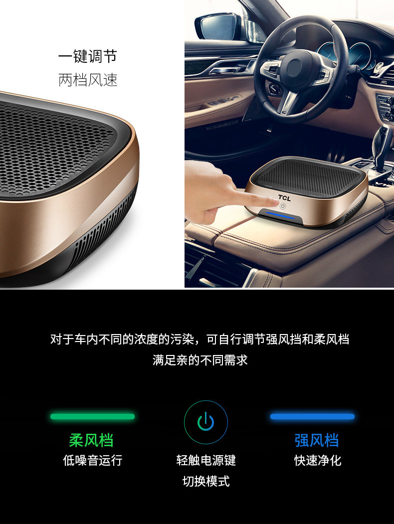 TCL车载空气净化器汽车内用消除异味负离子氧吧烟味除甲醛雾霾