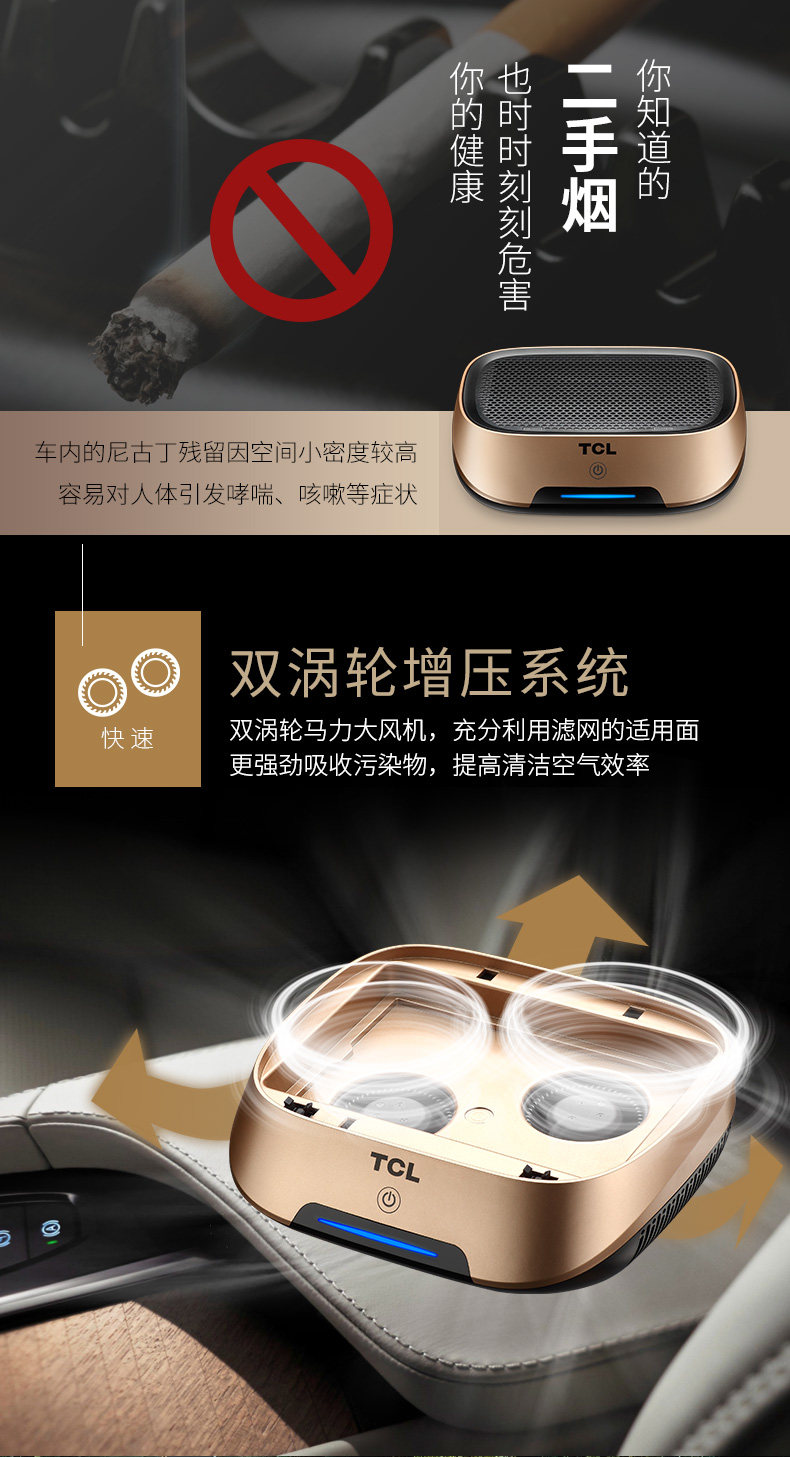 [tcl欢乐购专卖店车用氧吧,空气净化器]TCL车载空气净化器汽车内用消除异味月销量0件仅售259元