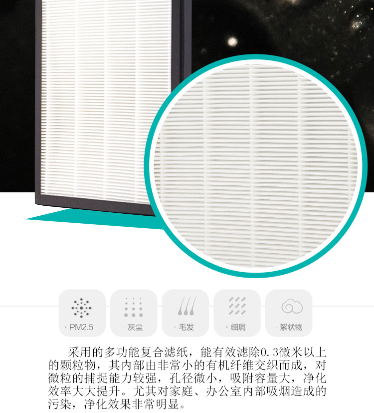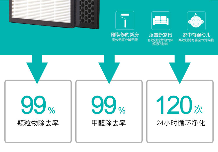 • 产品功能:除甲醛、PM2.5、除烟除尘、除雾霾