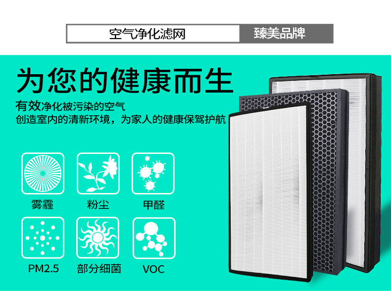 [臻美电器旗舰店净化,加湿抽湿机配件]适配TCL空气净化器滤网TKJ510月销量2件仅售298元
