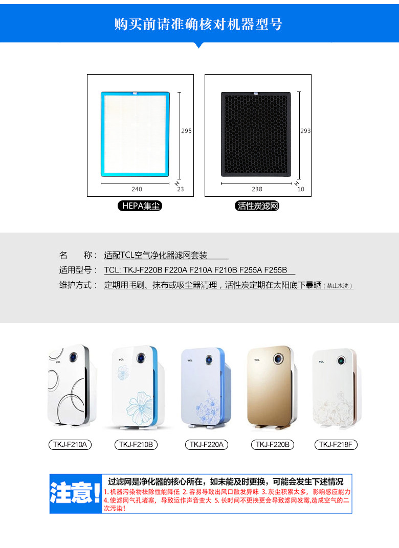 适配TCL空气净化器HEPA过滤网蜂窝活性炭TKJ-F210B/F210A/F220A/F