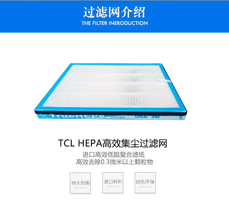 [KISSAIR空气净化器及过滤网配件工厂店净化,加湿抽湿机配件]适配TCL空气净化器HEPA过滤网蜂月销量1件仅售68元