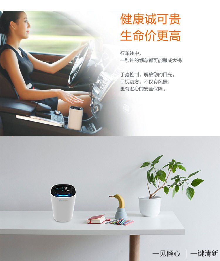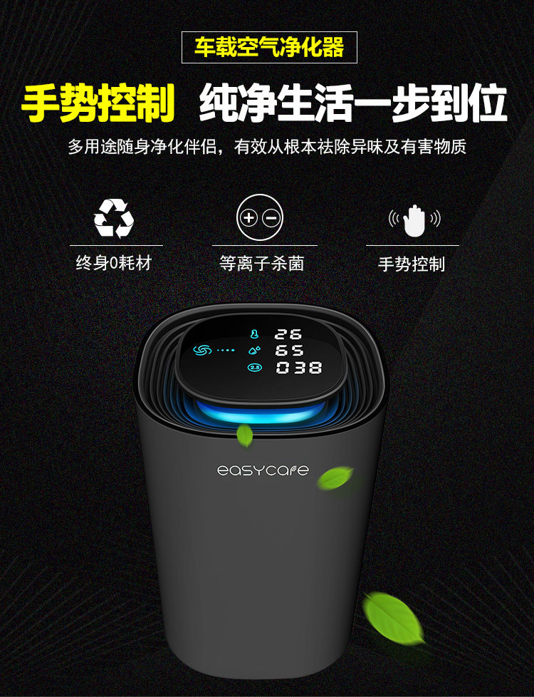 智能车载空气净化器等负离子杀菌除尘甲醛手势汽车净化器定制logo
