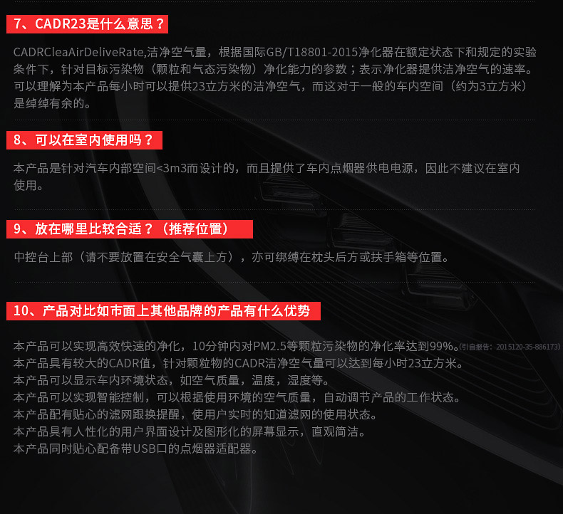 博士净化器效果不错,车内异味明显的减小了,夏天再也不怕暴晒车内异味了,机器外观也高大上,不愧是品牌货,很满意.