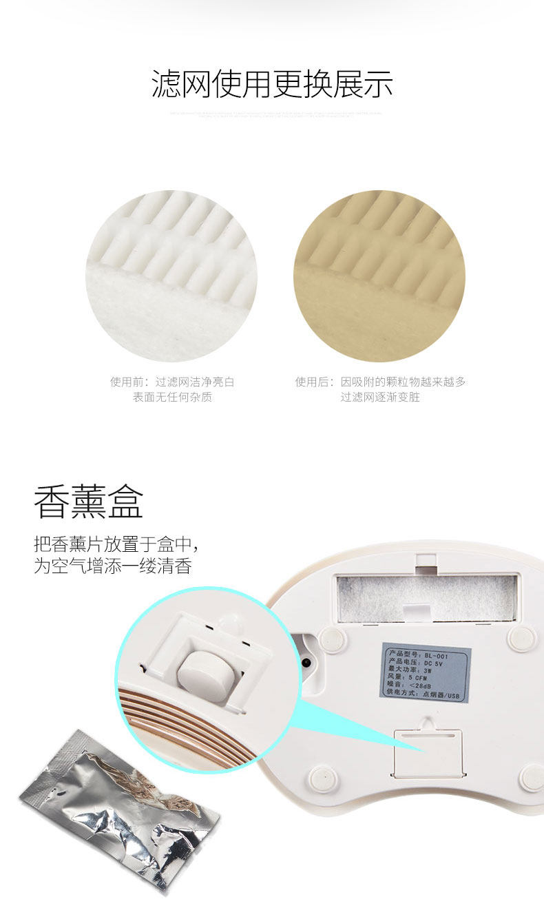• 功能:消除异味过滤灰尘芳香功能