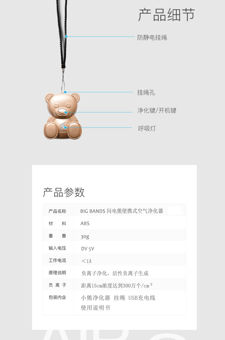[泰迪熊正版店空气净化,氧吧]big bands闪电熊车载空气净化月销量3件仅售138元