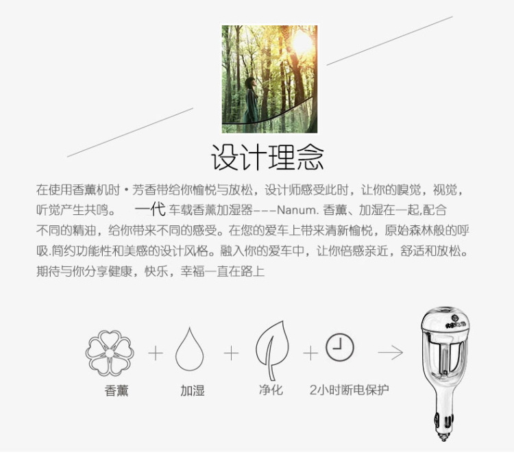 • 功能:消除异味 过滤灰尘 杀菌 芳香功能 加湿