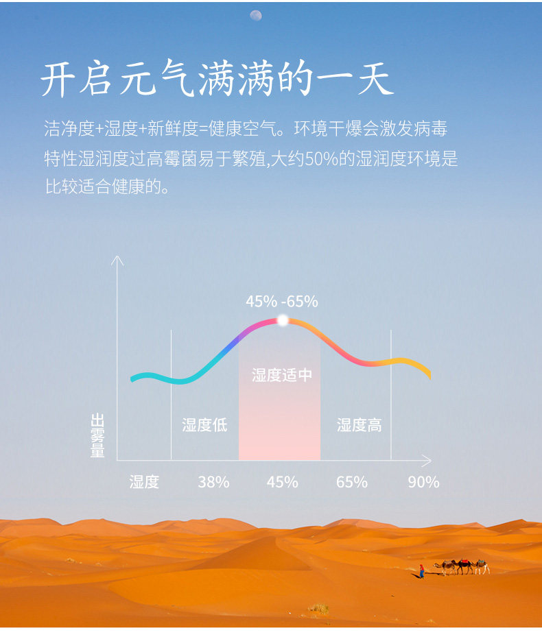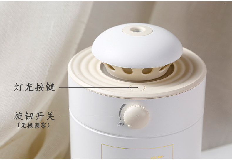 容量真的很大,用了三个晚上才加了一次水。灯光不错,很有氛围,个人感觉有助眠的效果。无极调雾这个功能我很喜欢,因为现在还没有那么干燥,所以雾不用开很大,用着正好。