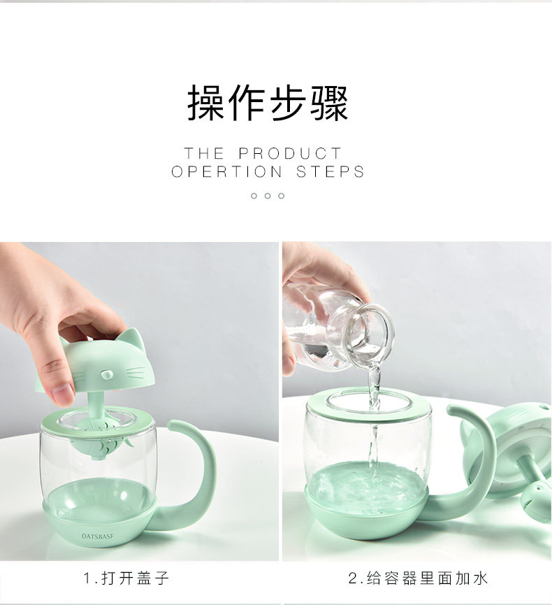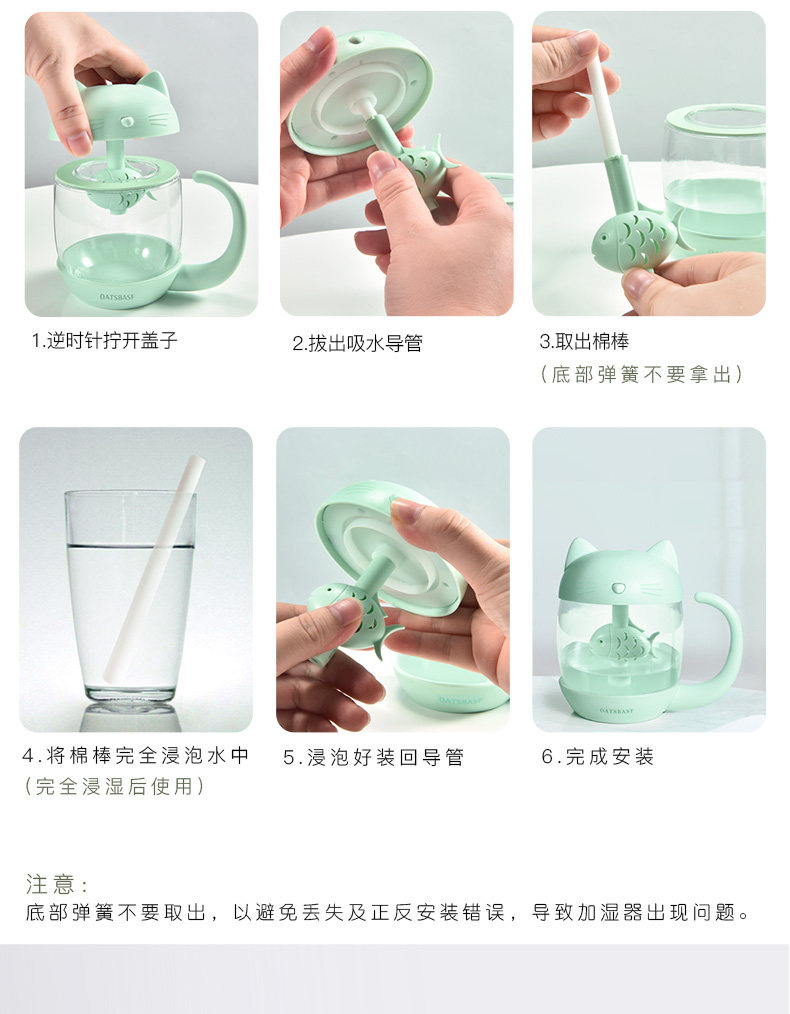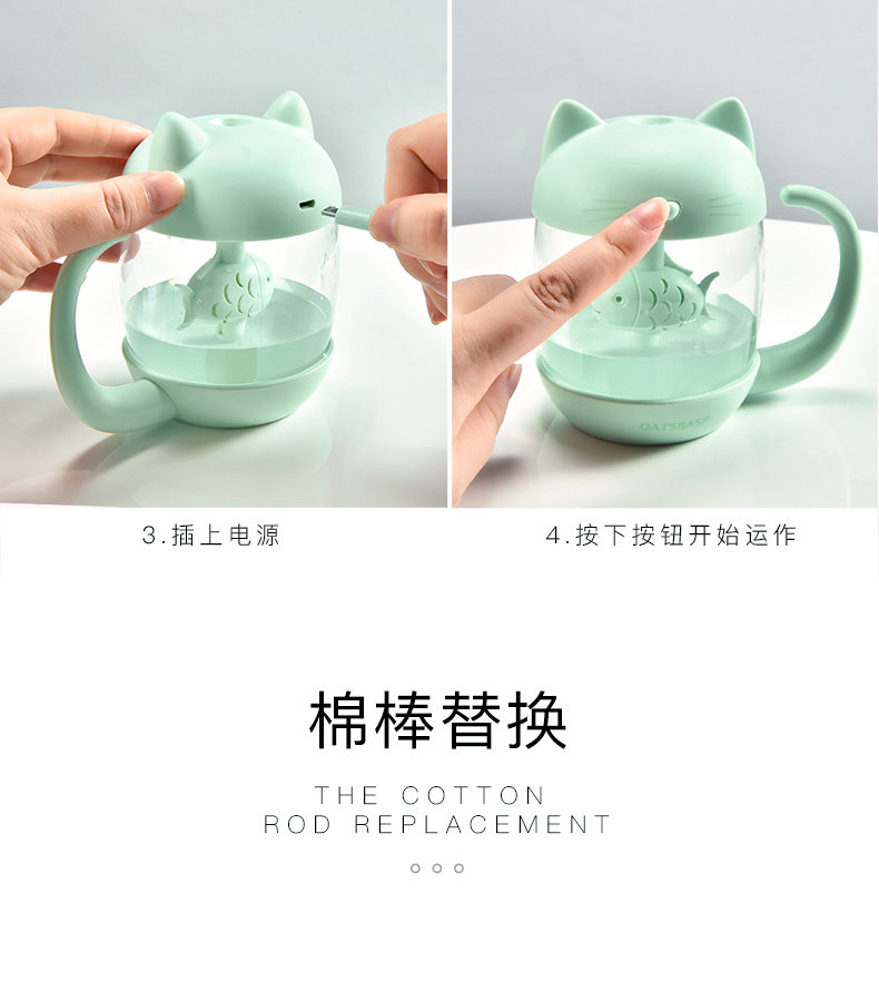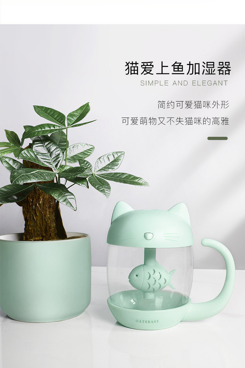 用了一段时间,来评价下。加湿器收到 包装很精美,没有破损,质量也不错呢,秋天皮肤比较干燥, 放一个小小的加湿器在房间里既不占地方又能很好的加湿环境,不错 小身材大用处呢 喷的雾很细腻。没有杂音。而且小猫咪的造型的超可爱。颜色也很漂亮,小小的很喜欢!操作简单,拿到就用上了,很漂亮的。