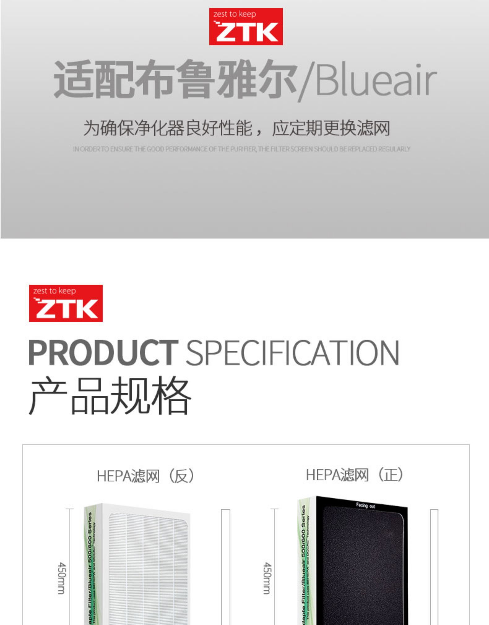 [ztk电器旗舰店净化,加湿抽湿机配件]适配布鲁雅尔blueair滤网空气净月销量2件仅售298元