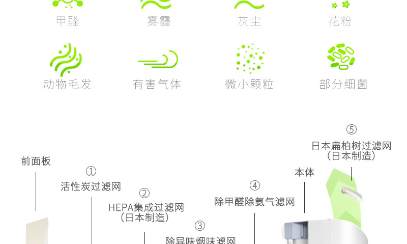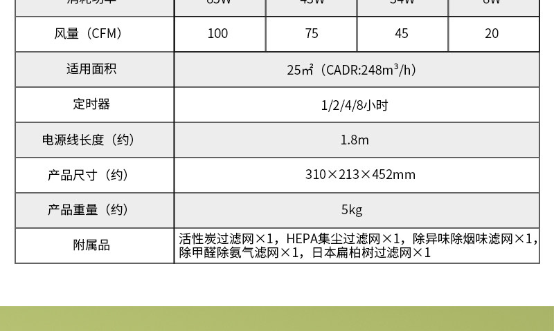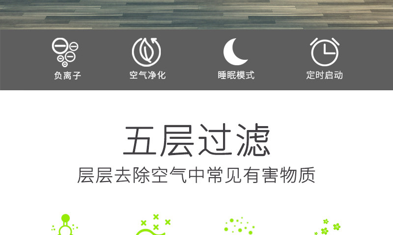• 功能:定时 除花粉 除甲醛 除烟除尘 杀菌