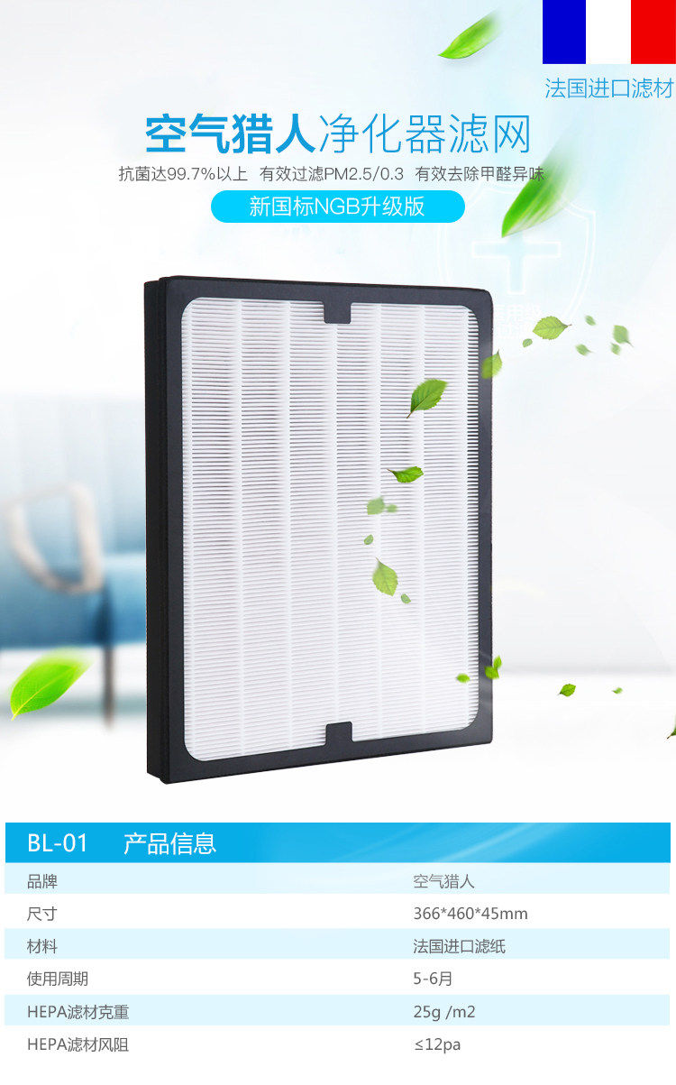 • 滤材:法国进口HEPA滤纸