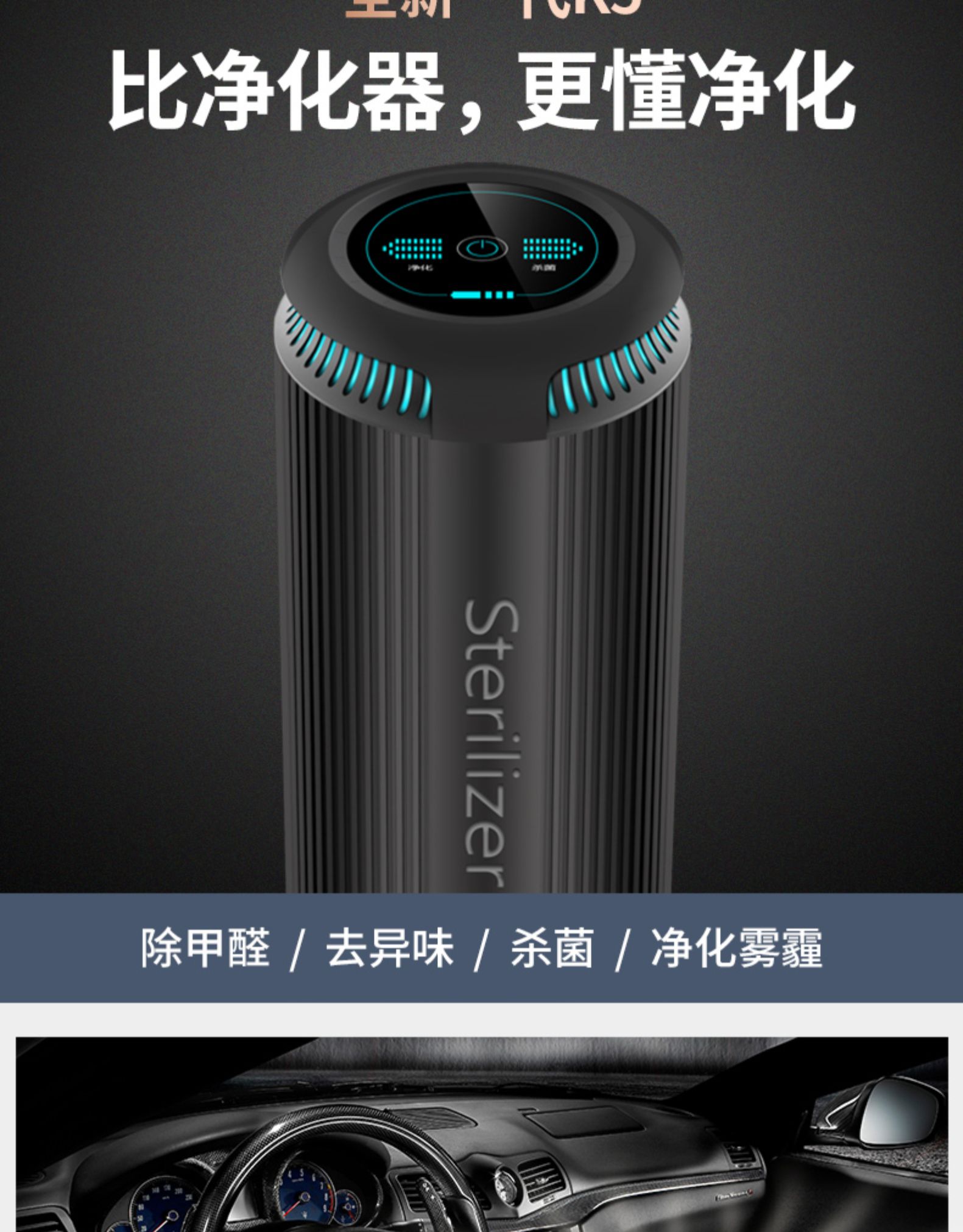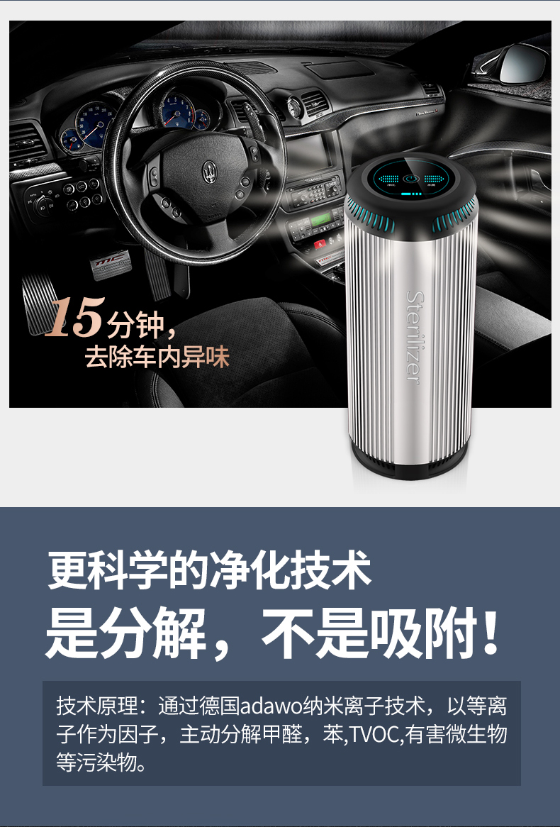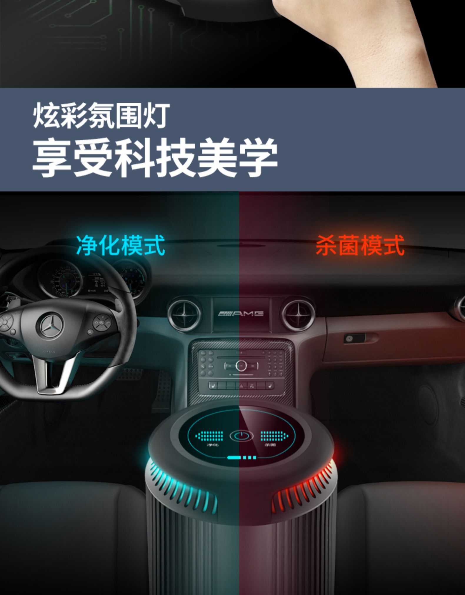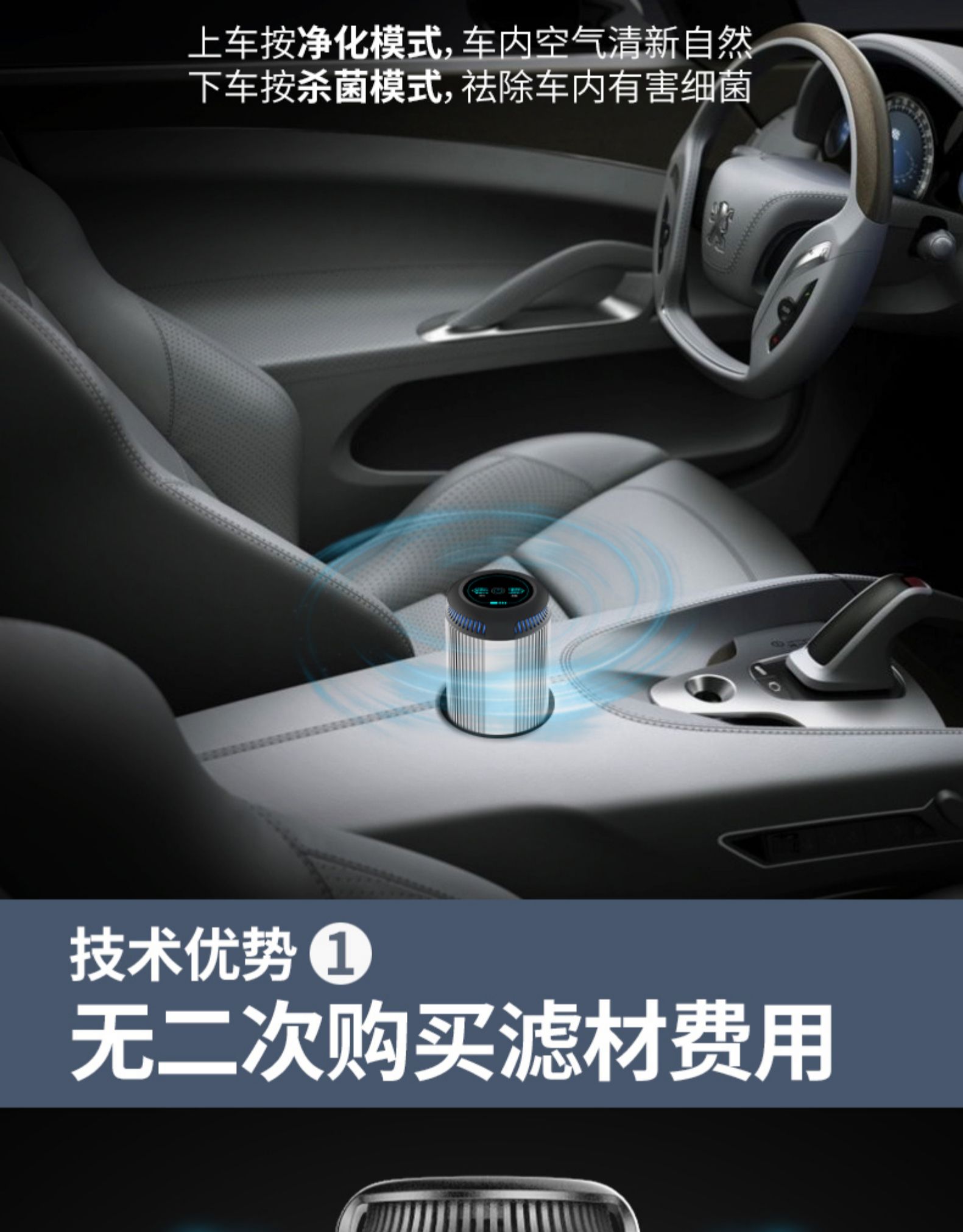 刚刚收到,开箱检查,发现完全没有电。现充现试机。宝贝分量很足,插上车载点烟器,亲点开关键,显示蓝色指示灯为净化空气模式,有呼呼的吹风声。噪音不算大,如果在启动车的状态下,此声音可以忽略不计。长按开关键立马指示灯显示橘红色为杀菌模式。感觉杀菌除臭的效果来的更直观点,随即关机。进一步的体验后再追评一下。