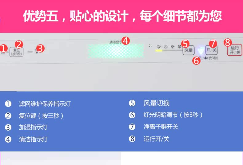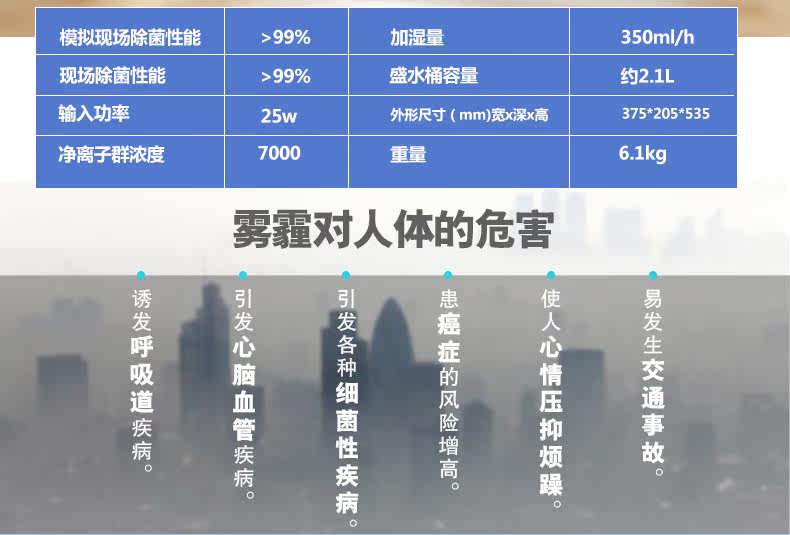 • 功能:除甲醛 除烟除尘 杀菌 加湿