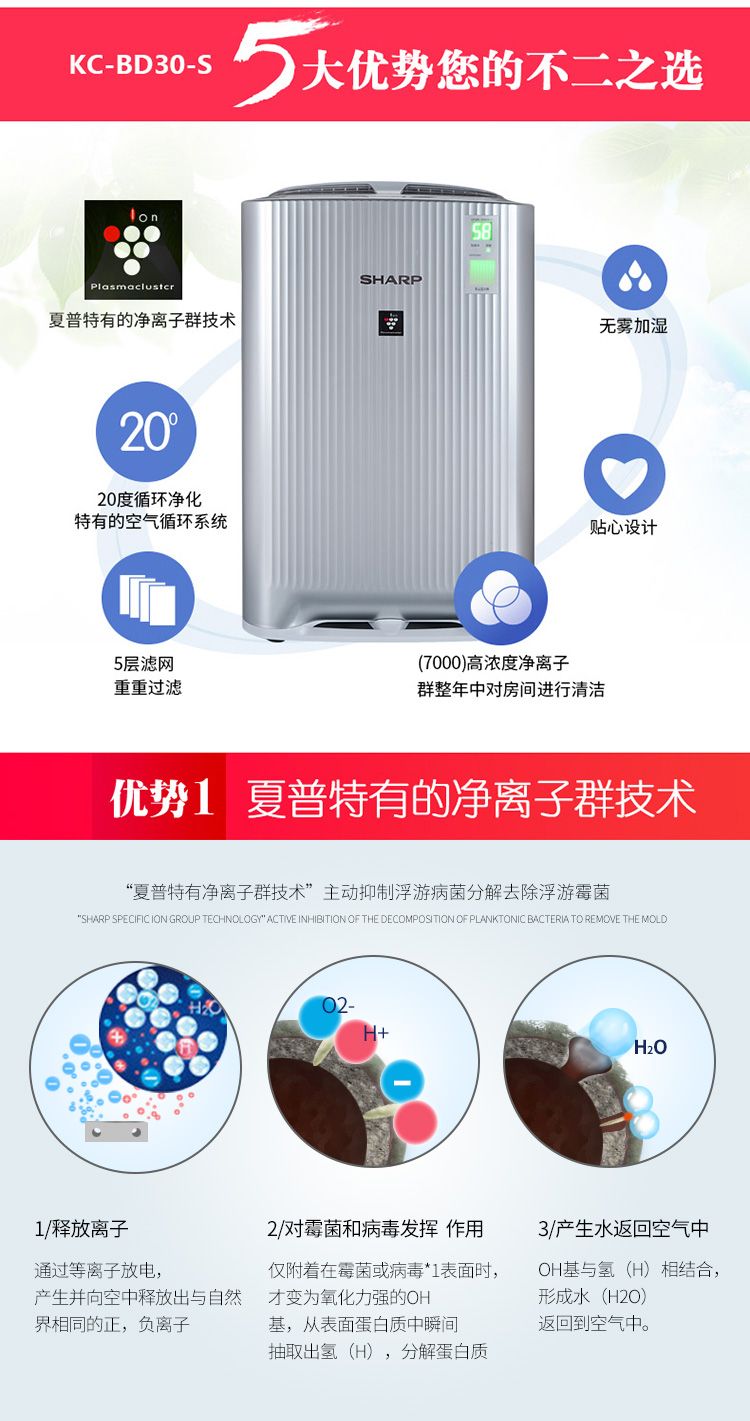 (72)[夏普荣拓专卖店空气净化,氧吧]夏普空气净化器家用W38月销量99件仅售2299元