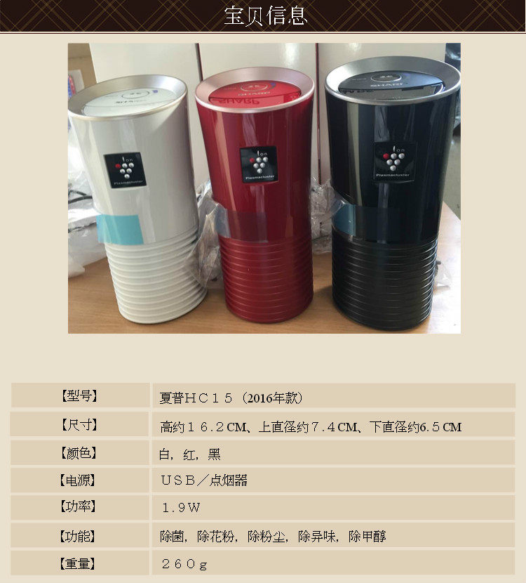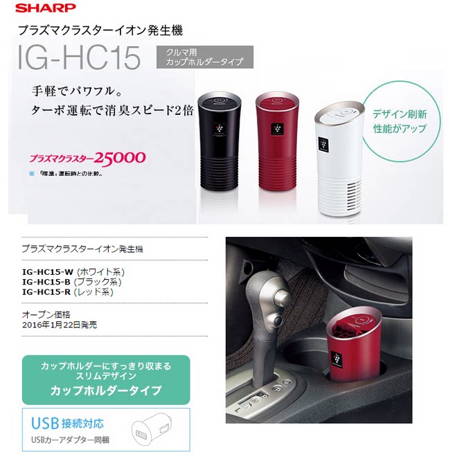 夏普2016款 IG-HC15 车载 空气净化器 带USB除甲醛