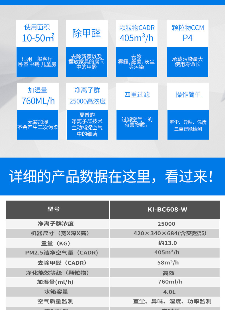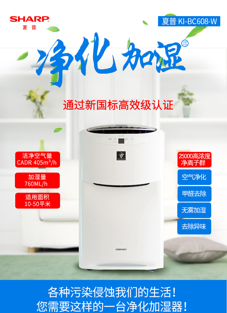 Sharp/夏普空气净化器家用加湿办公室除甲醛雾霾二手烟KI-BC608-W