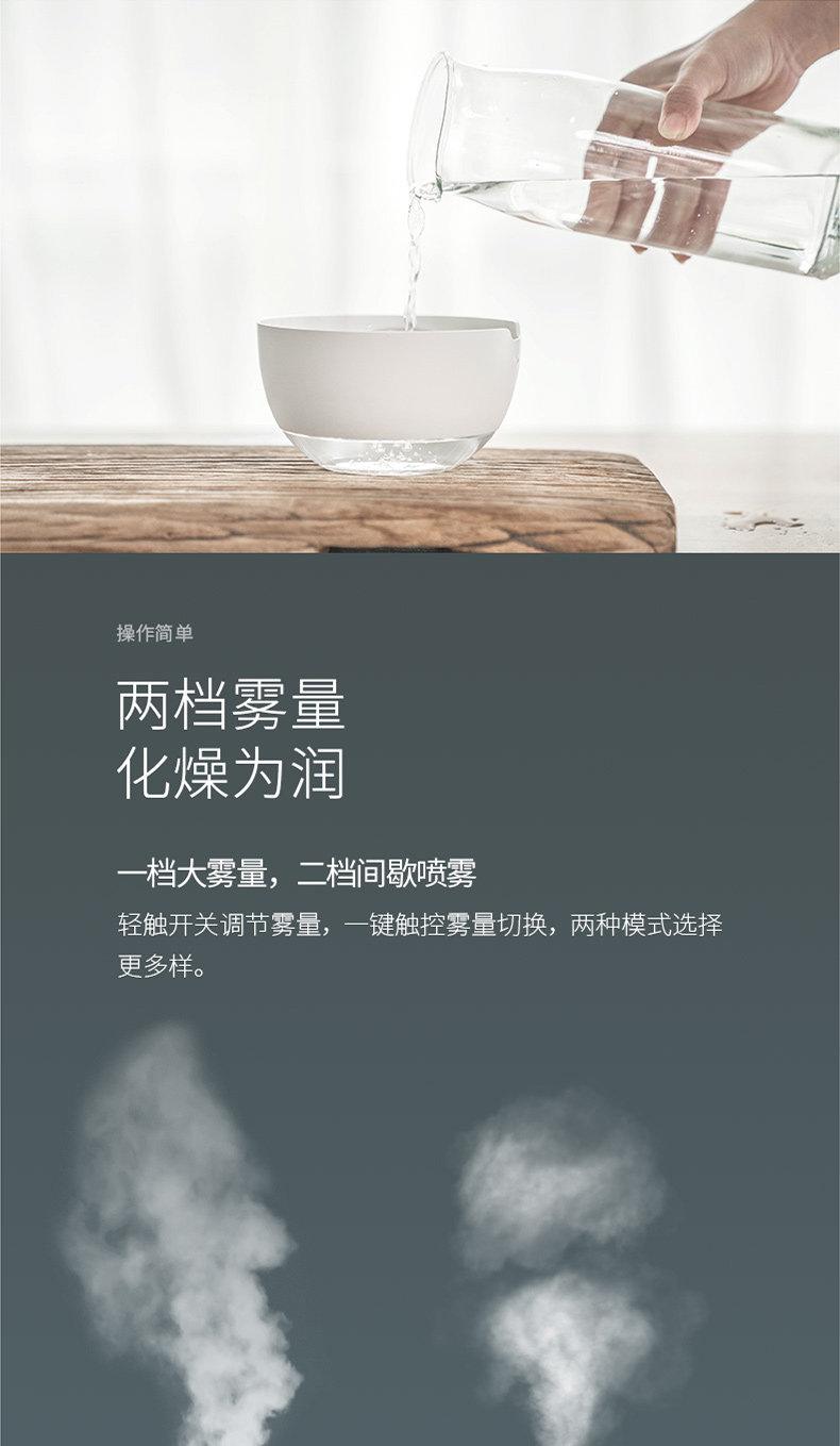 外形比较优美,雾量小,加湿效果有限。