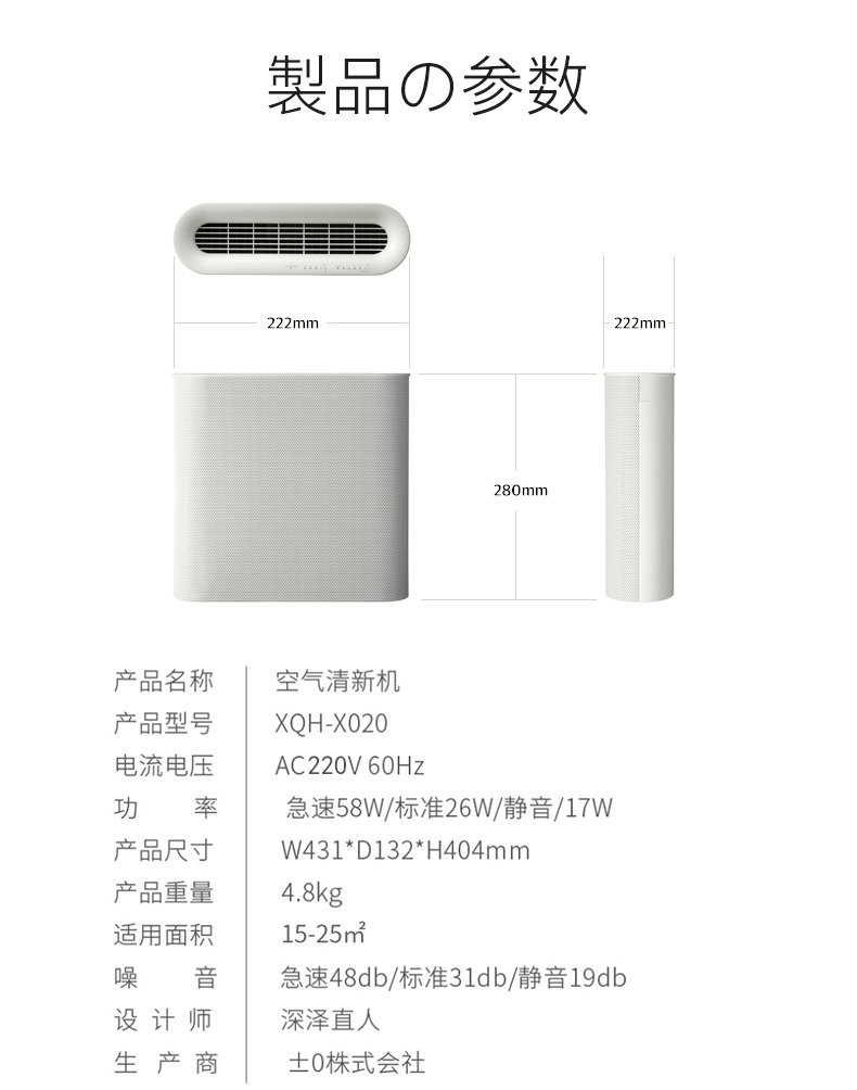 [正负零深泽直人企业店空气净化,氧吧]日本正负零深泽直人空气净化器家用小型月销量3件仅售1480元