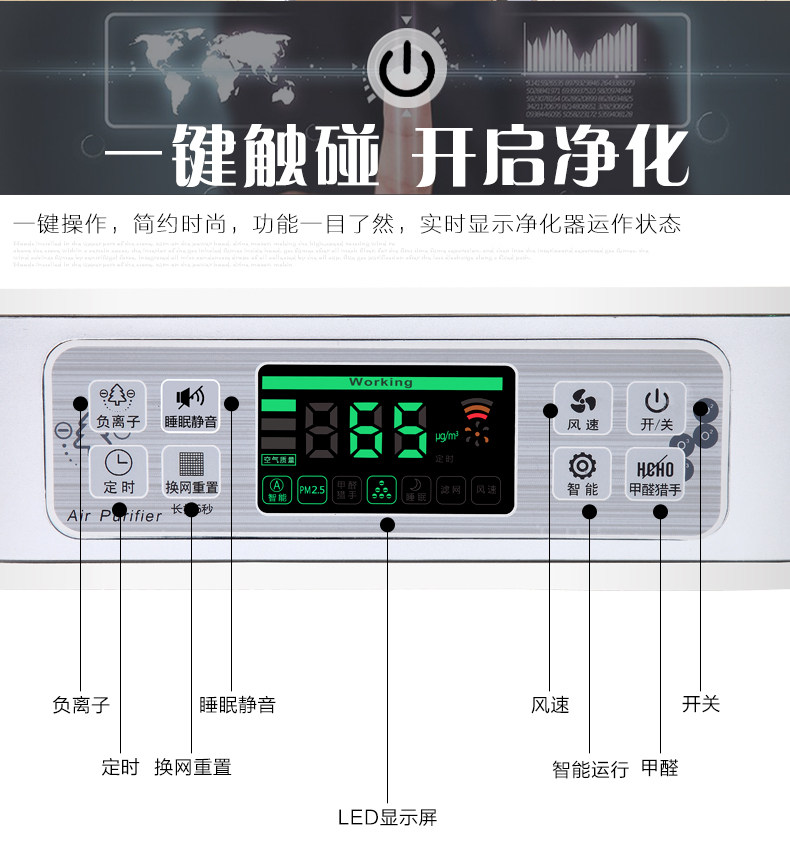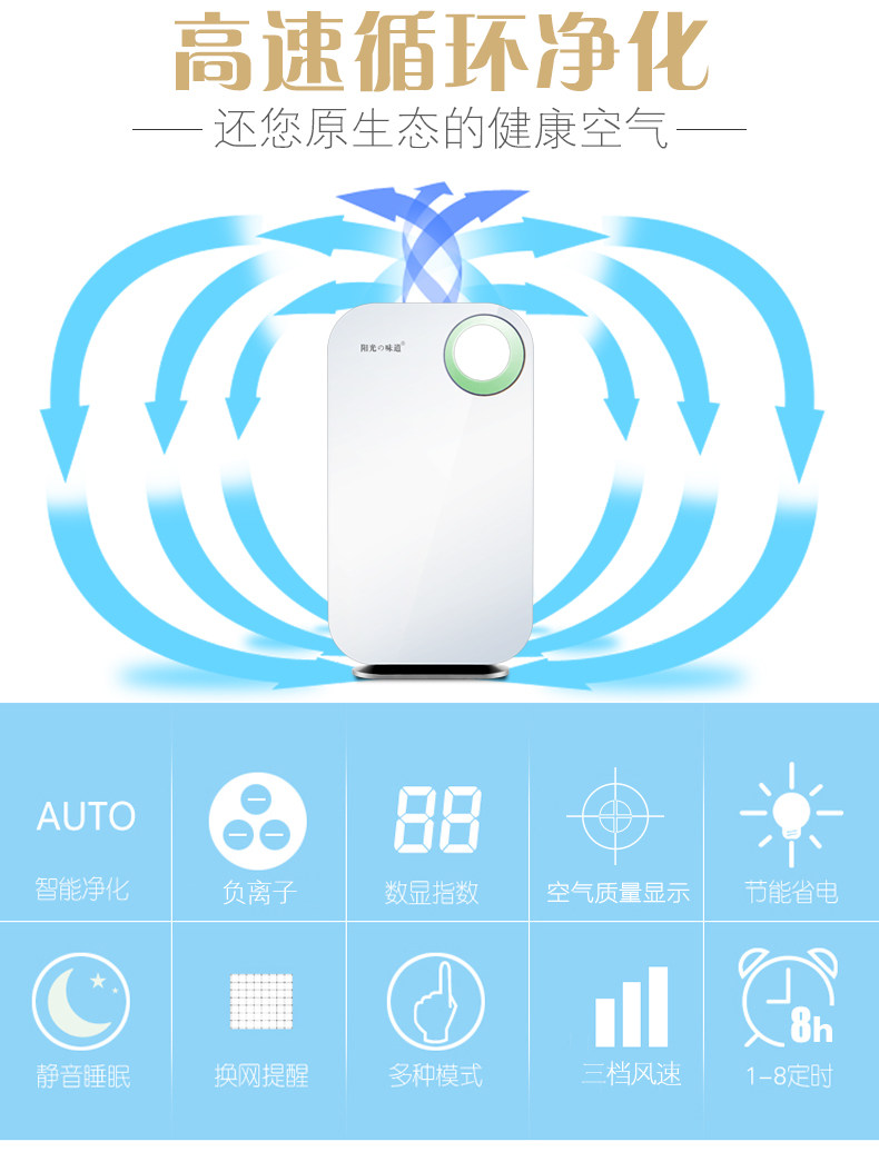 到了马上就拆开来用。外观简洁时尚,正常运行声音挺小的,而且睡觉再开静音模式也不影响睡眠。还特地点了根烟试试空气检测,这机子的效果果然不是开玩笑,在旁边抽烟过几秒检测灯显示红灯了,价格也挺合适,客服妹纸人也好,现在只要在屋里都开着的,推荐购买。
