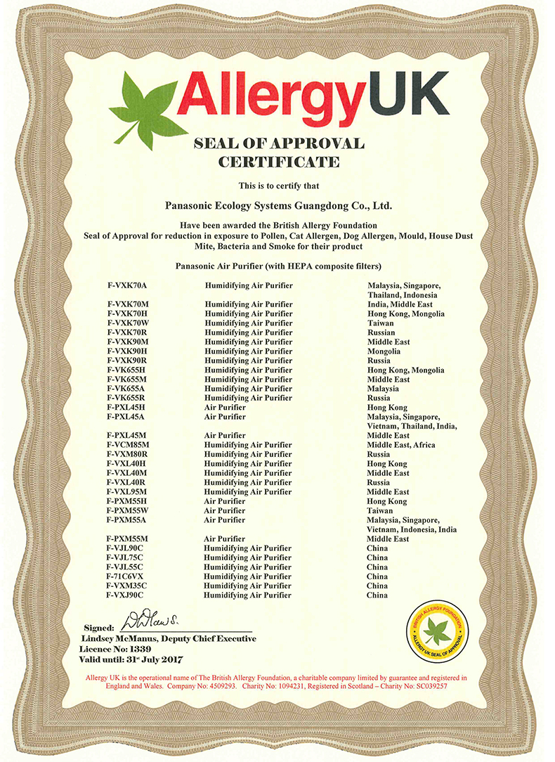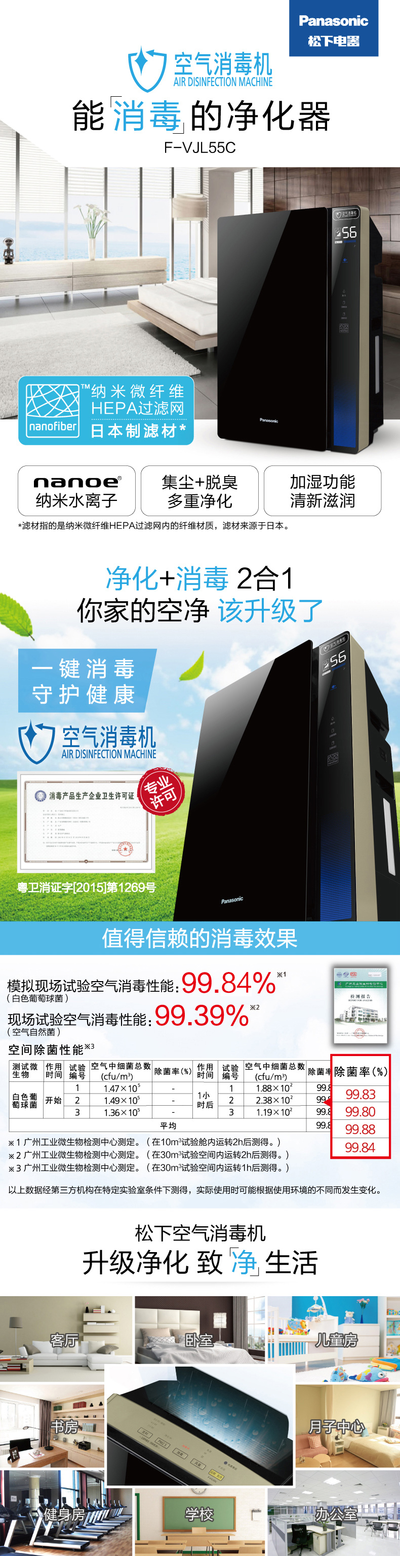 松下空气净化器家用除雾霾甲醛PM2.5异味烟味 除菌消毒机F-VJL55C