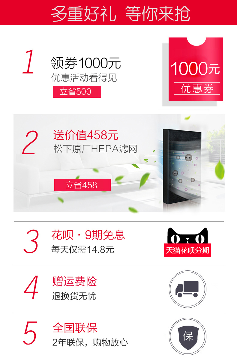 [松下富威专卖店空气净化,氧吧]松下空气净化器家用除雾霾甲醛PM2.月销量0件仅售4999元