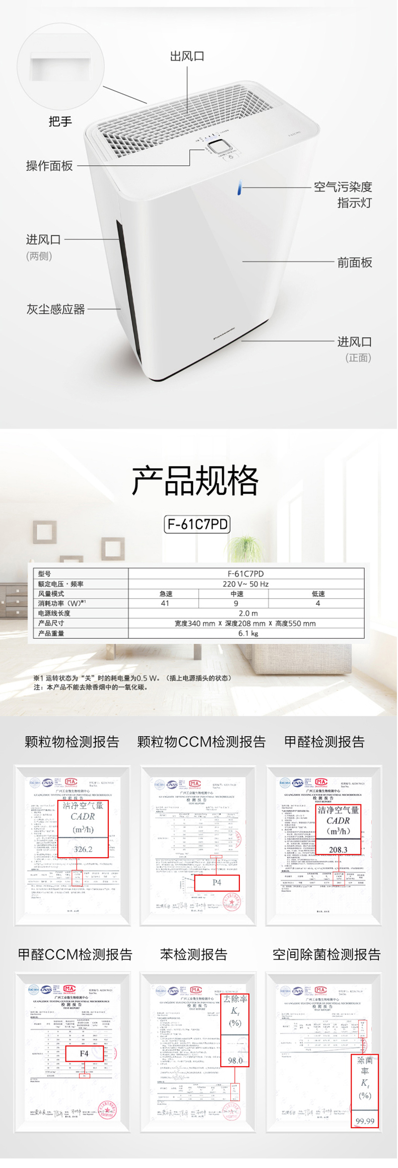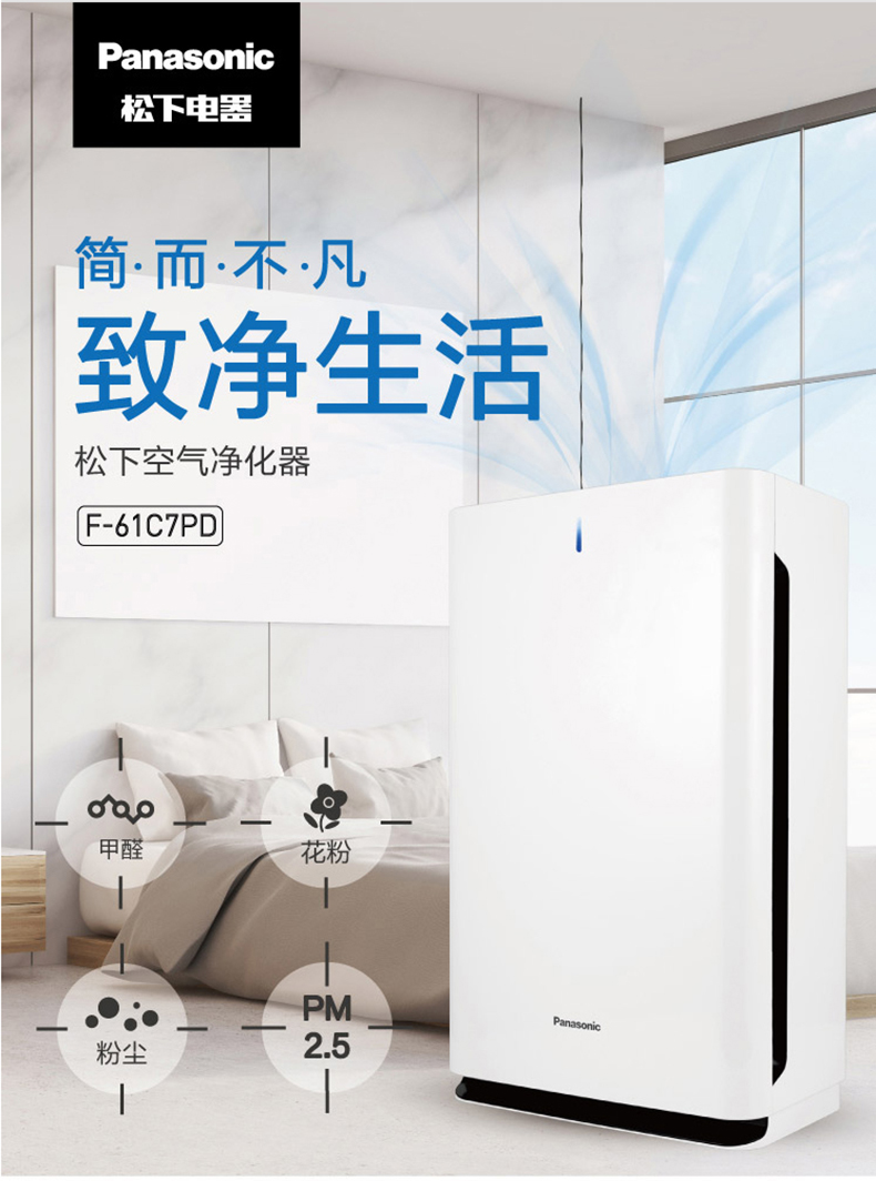 松下空气净化器家用除甲醛PM2.5异味烟味卧室净化器F-61C7PD