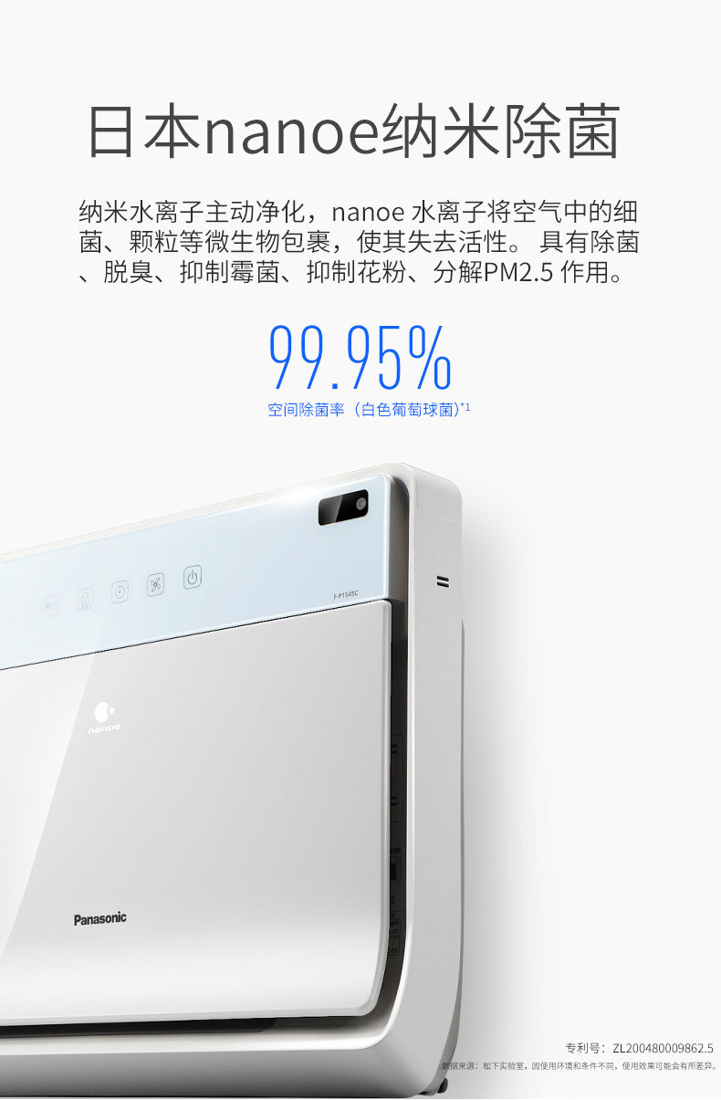 松下空气净化器家用房间卧室内去除甲醛雾霾烟尘氧吧F-P1545C