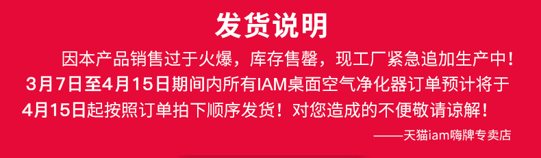 之前买过IAM的空气净化器在家里用了,看到有这个新品桌面空气净化器上市,购买收到了发现净化效果很好啊,外观也好看,给办公室奋斗的小伙伴们每人都买了一台当福利了,办公桌标配,有新伙伴加入还会持续采购,办公室新装修的,保证他们的呼吸健康,才能保证他们心平气和,哈哈哈!