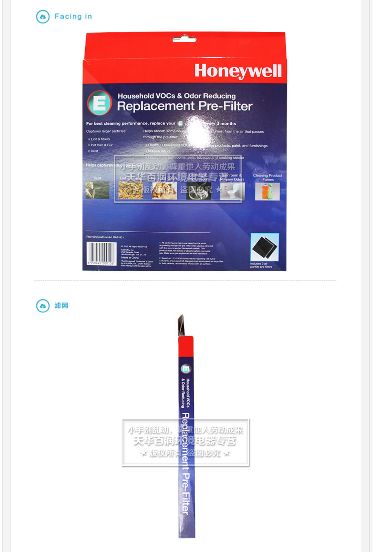 Honeywell/霍尼韦尔空气净化器HAP-801APCN沸石活性炭前置过滤网