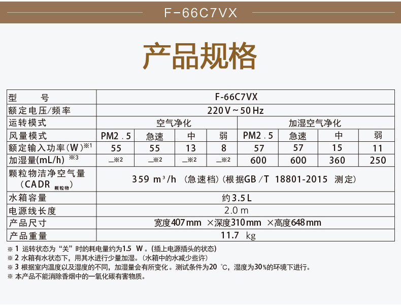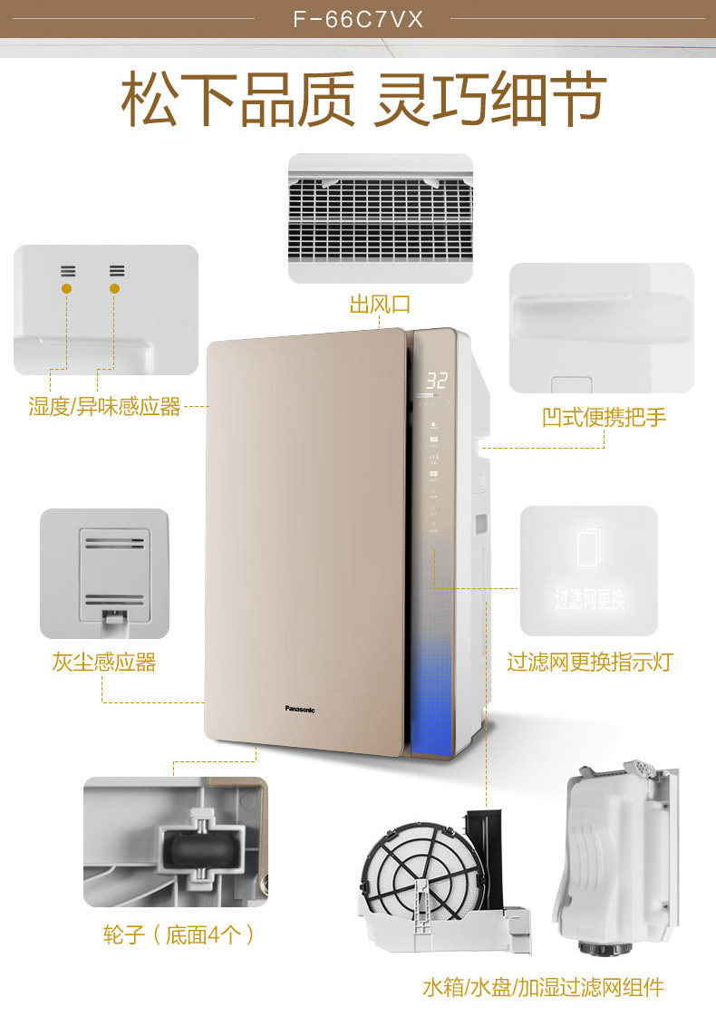 松下空气净化器家用F-66C7VX-N卧室杀菌加湿除甲醛办公室二手烟
