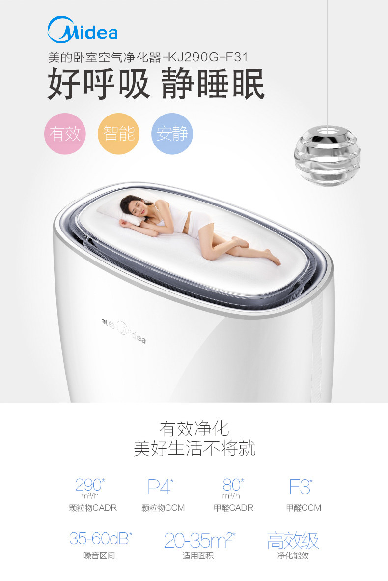 美的空气净化器 家用卧室 除甲醛除烟味除霾pm2.5氧吧 负离子