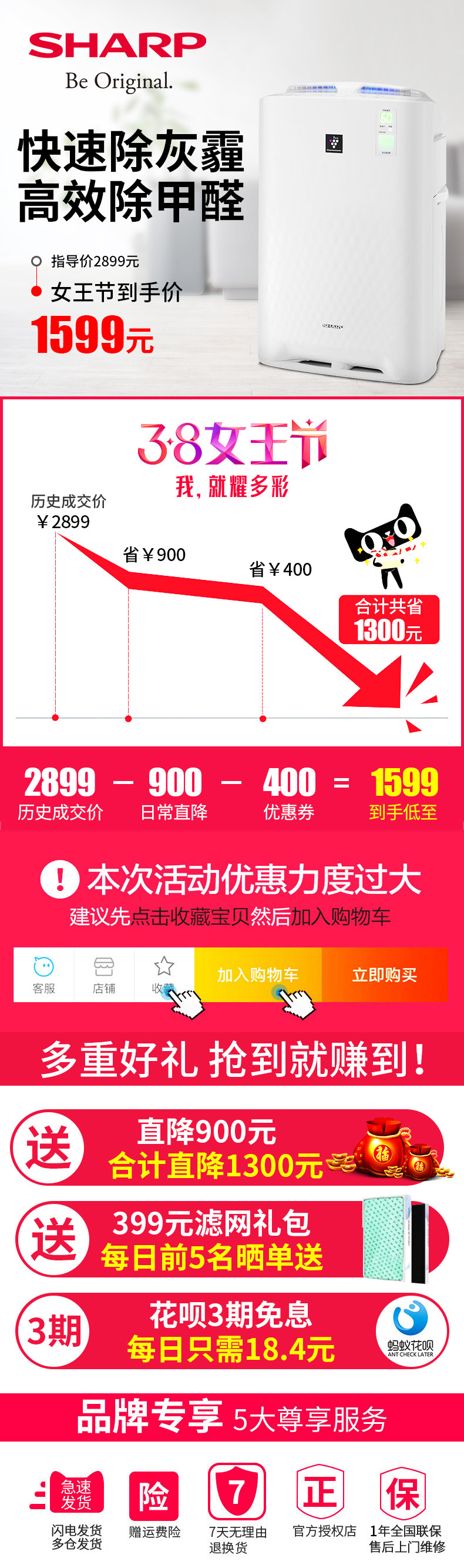 (72)[夏普荣拓专卖店空气净化,氧吧]夏普空气净化器家用W38月销量99件仅售2299元