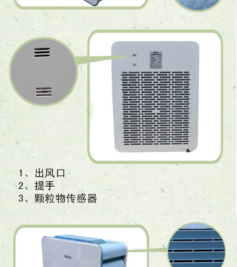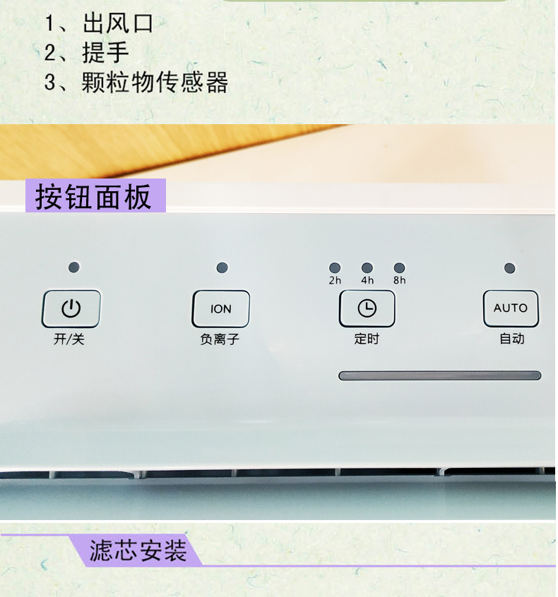 • 功能:除颗粒物除甲醛除烟除尘除雾霾