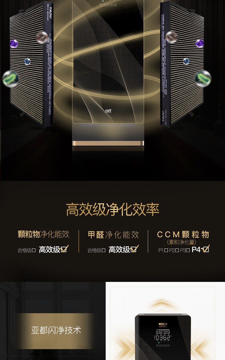 亚都空气净化器KJ1660G-P11DD 双面钢铁侠会议室别墅棋盘室