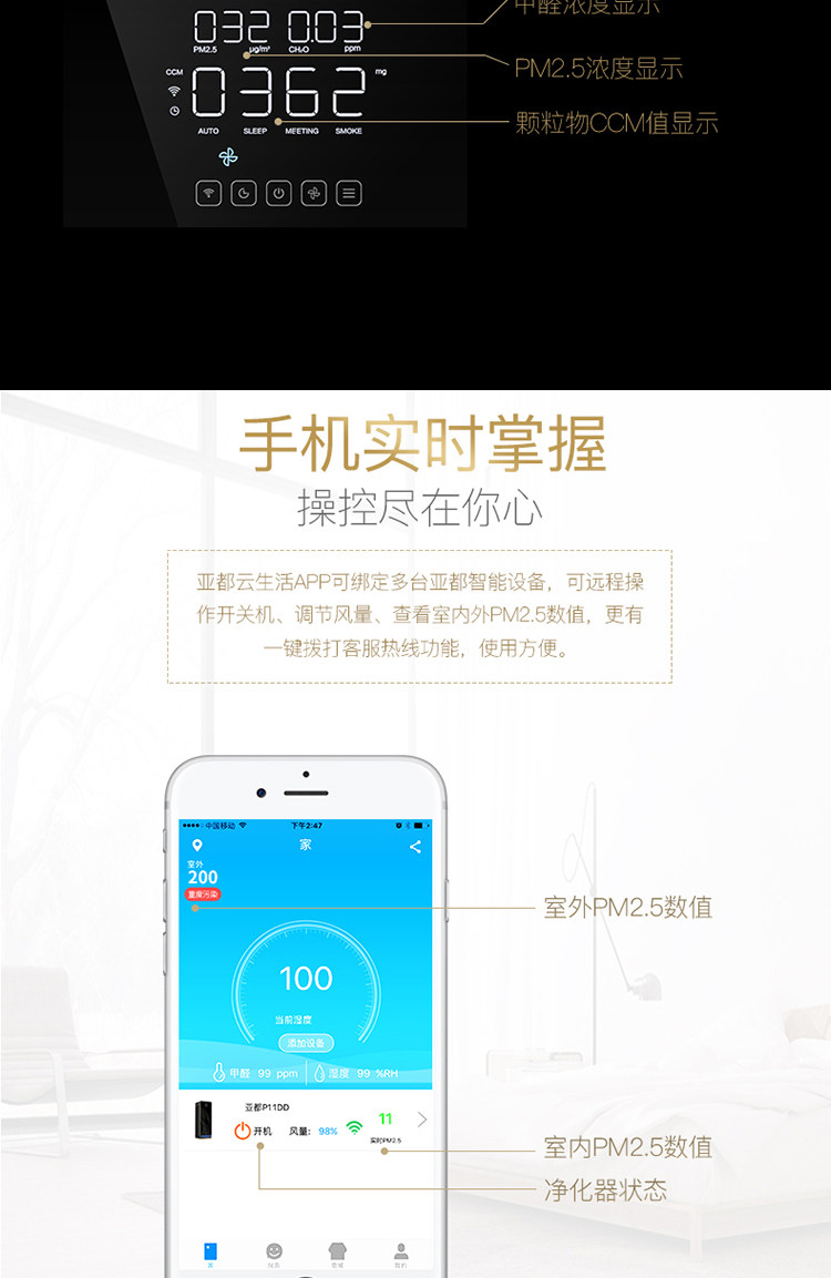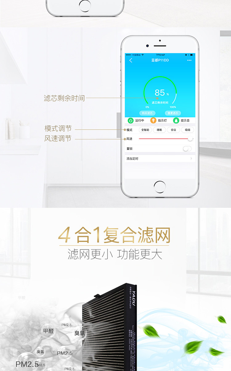 • 功能:定时 除颗粒物 除甲醛 除烟除尘 杀菌