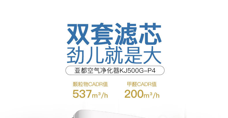 亚都空气净化器KJ500G-P4双面侠双面高效三合一滤网除甲醛PM2.5