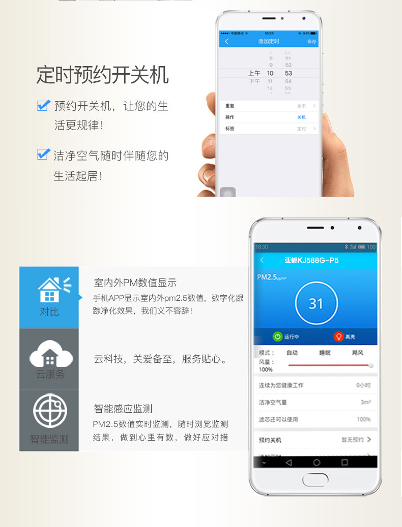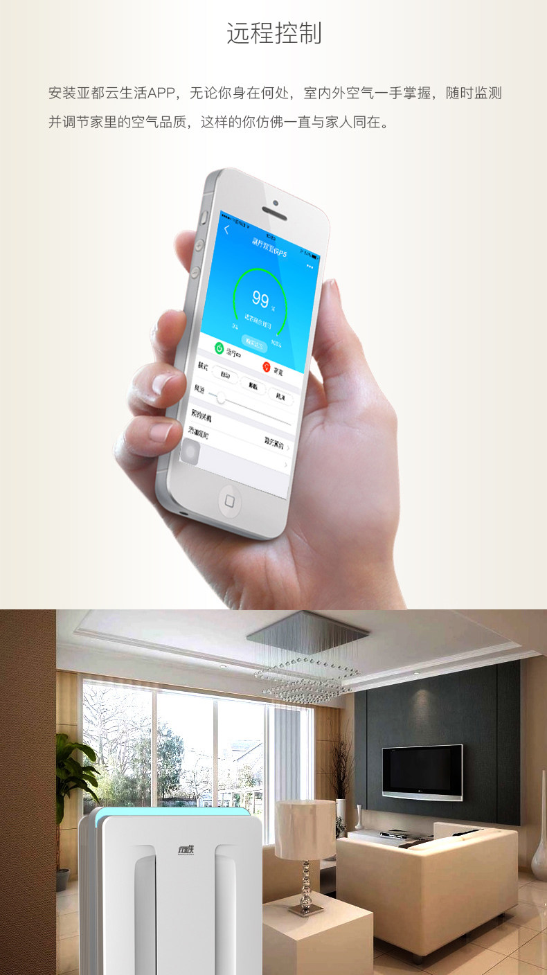 • 功能:定时除花粉除甲醛除烟除尘