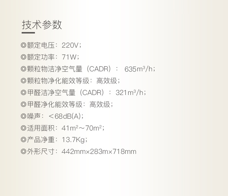 • 空气净化能效等级:高效级
