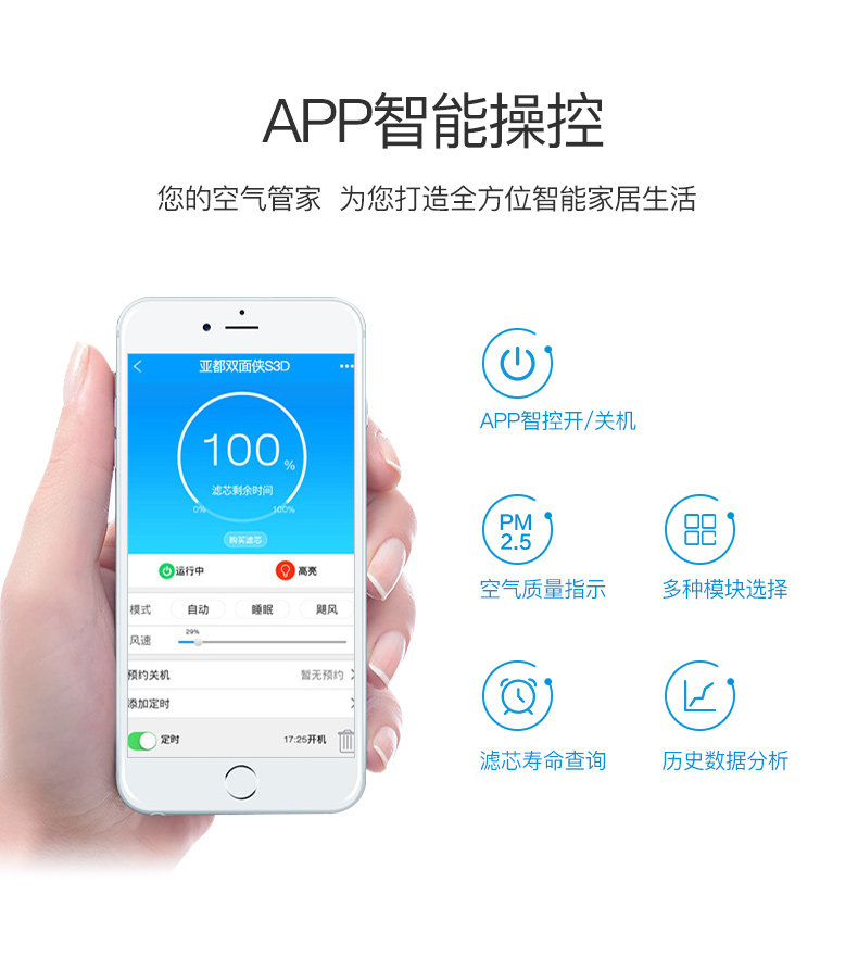 • 功能:除花粉除颗粒物除甲醛除烟除尘杀菌