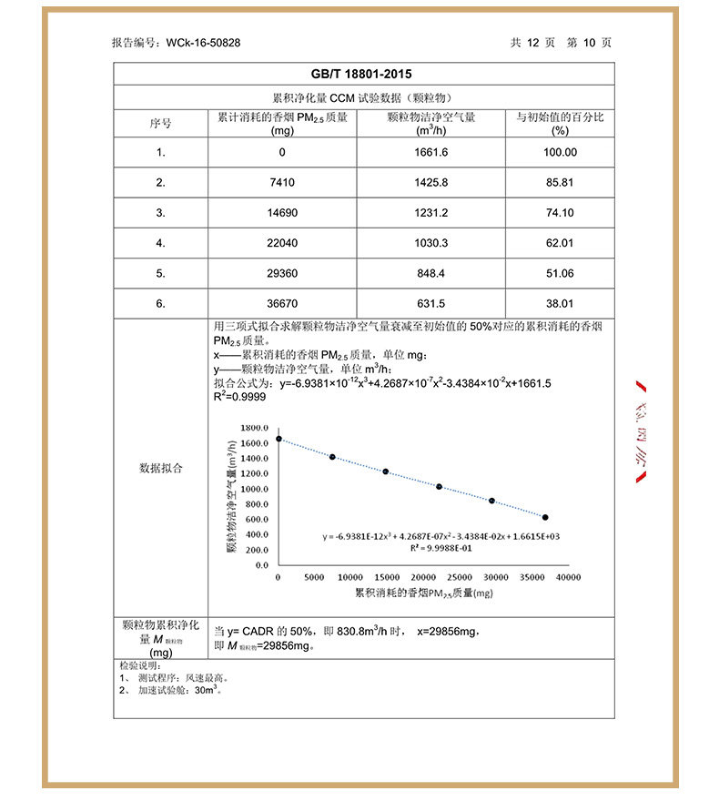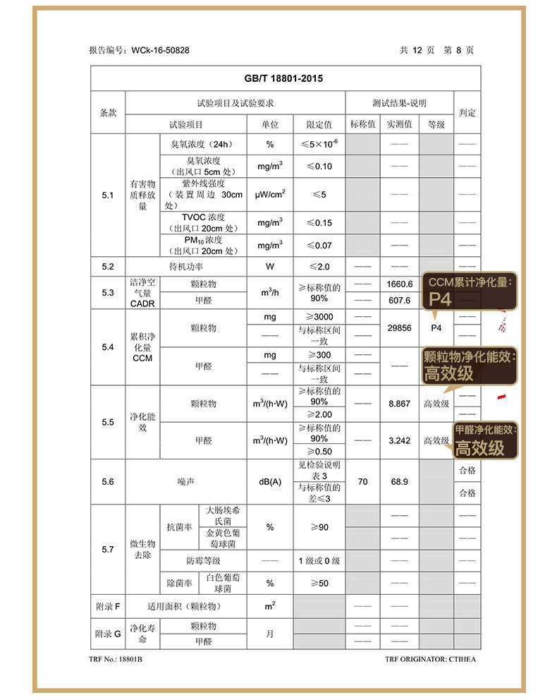 • 颗粒物CCM值:P4(12000≤M)