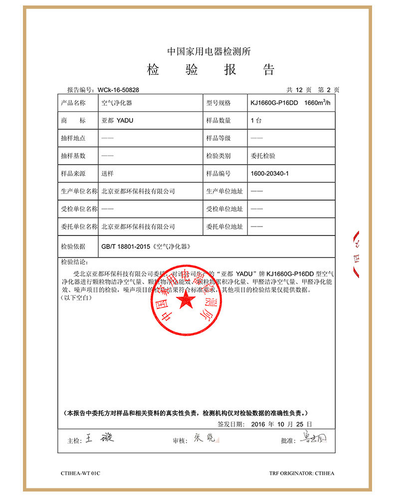 • 检测报告编号:WCK-16-5-826