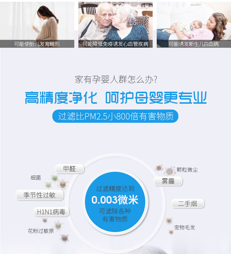 净化器是买在店里吸烟味用的,加湿净化一体,反应灵敏,用了一段时间,空气真的清新了不少,整体还是比较满意的