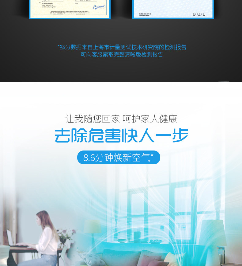 产品使用简便,外观好看,给人感觉高大上大品牌值得信赖。机器显示我家空气超级不好。正在工作。