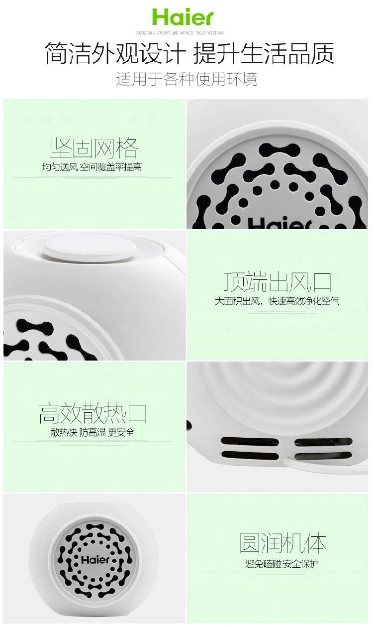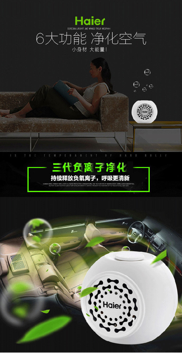 [海尔智健家居空气净化,氧吧]海尔迷你桌面空气净化器小型车载净化器月销量0件仅售229元